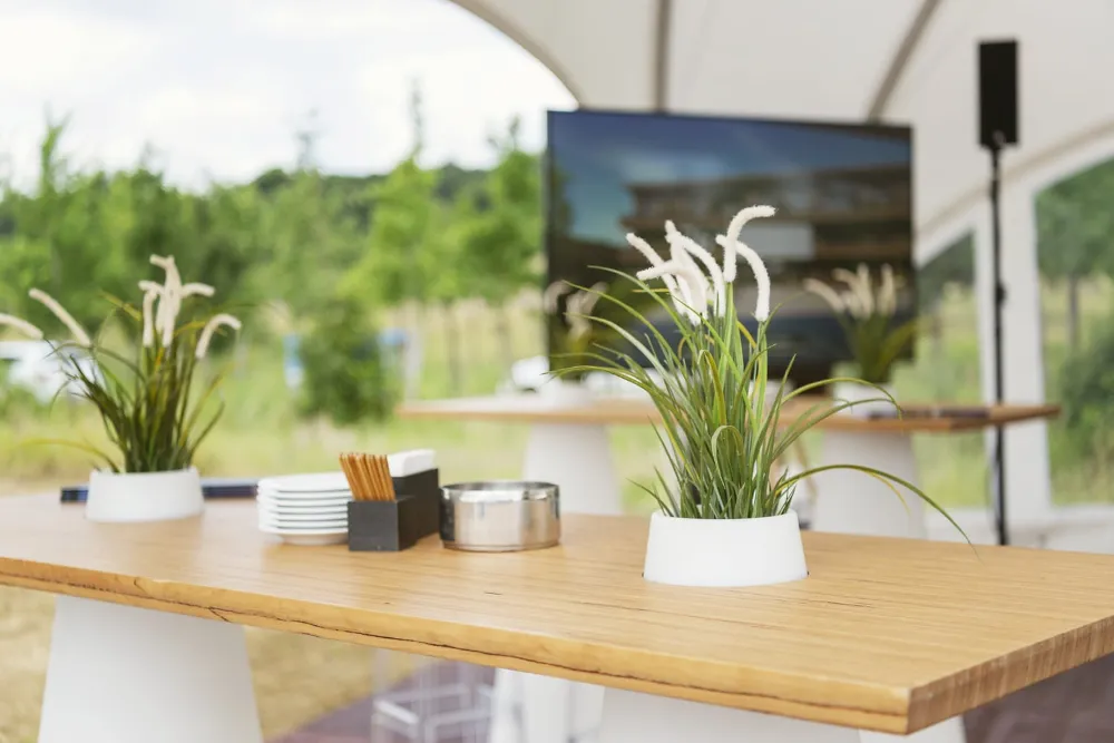 • Fêtes en plein air : Un décor harmonieux qui s’intègre naturellement à l’environnement extérieur.