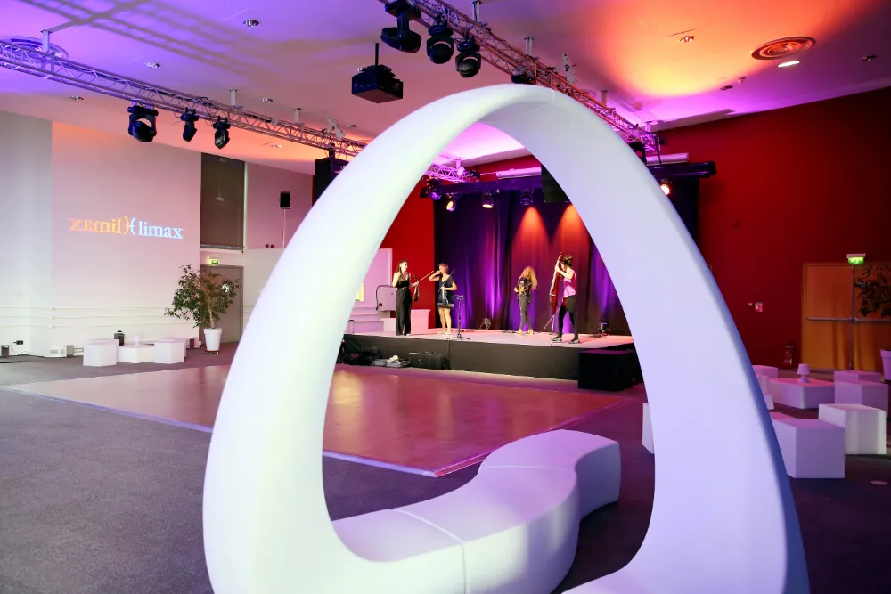 Parfait pour accompagner des lancements de produits, remises de prix, cérémonies de vœux, célebrations, ou congrès, le banc Boucle AND combine esthétique et praticité. Stable et résistant, il s’intègre aussi bien en intérieur qu’en extérieur, permettant de créer des ambiances modernes et cohérentes.