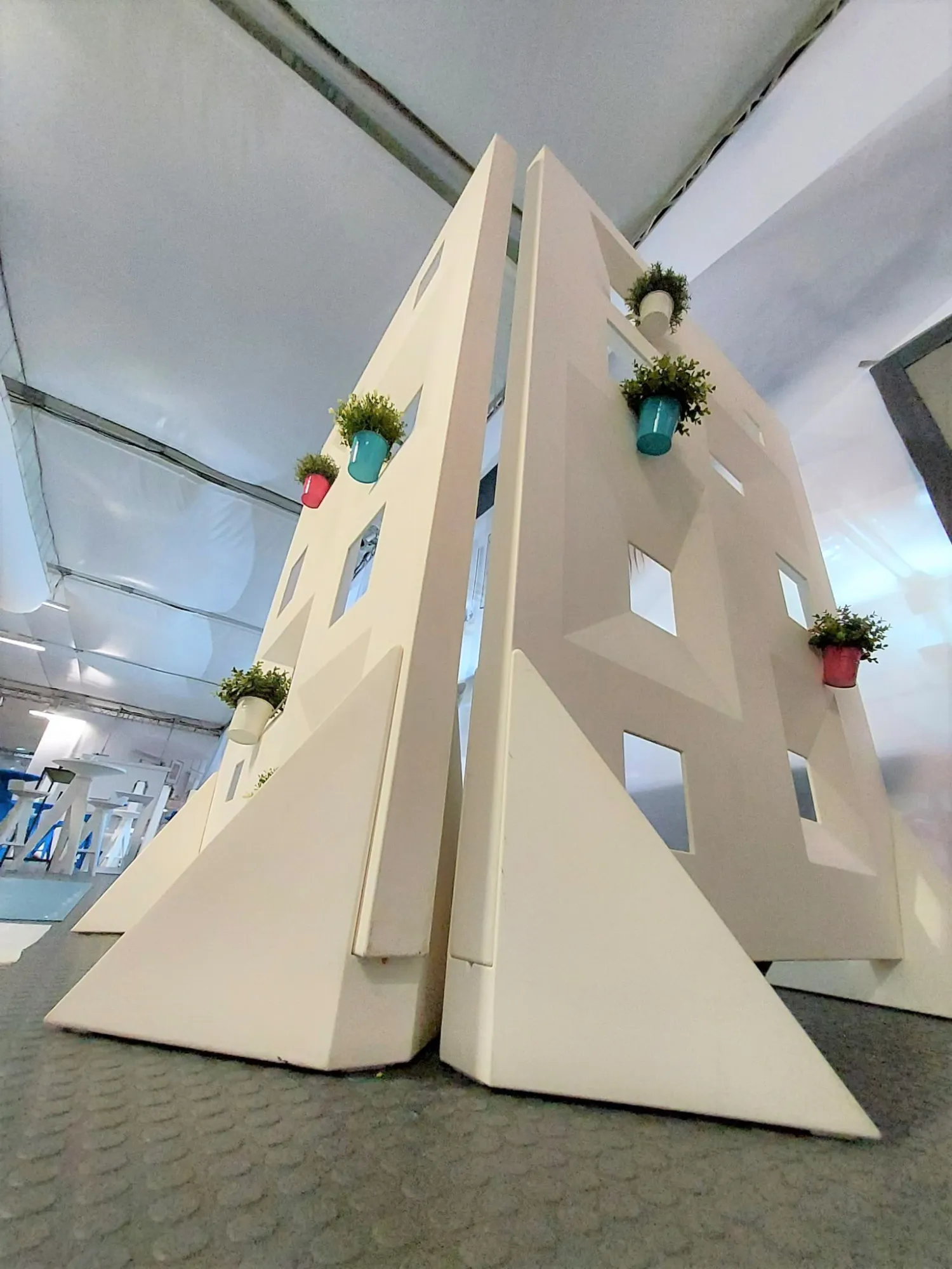 La cloison FRAME est une cloison décorative au design graphique et contemporain, pensée pour structurer vos espaces événementiels tout en apportant une identité visuelle forte. Grâce à ses formes géométriques en relief, elle crée un jeu subtil de volumes et de lumière qui dynamise instantanément votre scénographie.