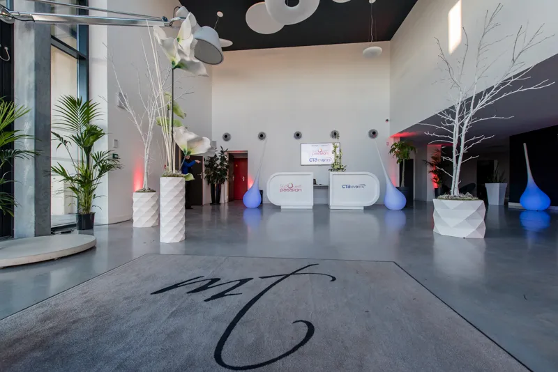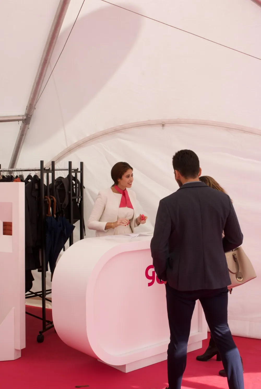 Pensé à la fois comme un élément fonctionnel et un véritable support scénographique, le desk RONDO facilite l’orientation, l’accueil et la gestion des flux tout en valorisant l’identité de votre événement. Sa façade sobre et élégante permet l’intégration de signalétique, de logos ou de supports de communication, renforçant ainsi votre image de marque dès l’entrée.