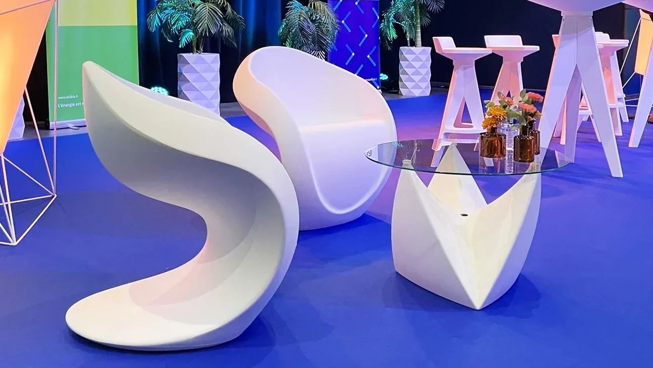Sa silhouette douce et moderne permet de l’intégrer aussi bien dans des scénographies minimalistes que dans des ambiances plus sophistiquées. Léger, stable et visuellement impactant, le fauteuil PENELOPE est une assise idéale pour structurer vos aménagements tout en renforçant l’atmosphère raffinée de votre événement.