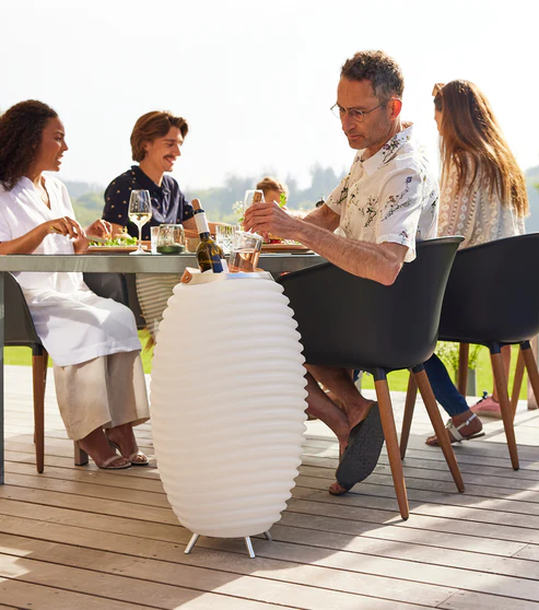 Parfaitement adaptée pour marquer une allée, décorer des espaces lounge ou accompagner des manges debout, cette lampe design attire naturellement l’attention et devient un atout décoratif incontournable. La SYNERGY H65 peut être utilisée seule pour un effet visuel fort ou combinée avec les autres tailles pour une mise en scène lumineuse harmonieuse. Sa batterie rechargeable offre une autonomie de 11 à 12 heures, garantissant une ambiance élégante et continue tout au long de votre soirée.