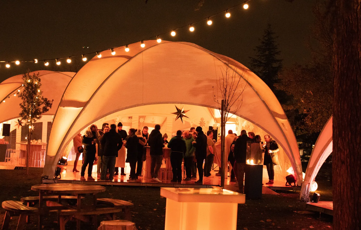 Particulièrement appréciée pour des garden parties, des mariages, des soirées en plein air ou des anniversaires d’entreprise, la Guinguette accompagne aussi parfaitement des formats plus professionnels. Elle s’intègre aisément dans un salon, un lancement de produit, un séminaire, un congrès ou lors d’une soirée thématique, où elle contribue à créer une ambiance lumineuse accueillante et intemporelle. Que ce soit pour un gala, une célébration, une soirée élégante, ou une journée portes ouvertes, cette guirlande offre un charme visuel incomparable.