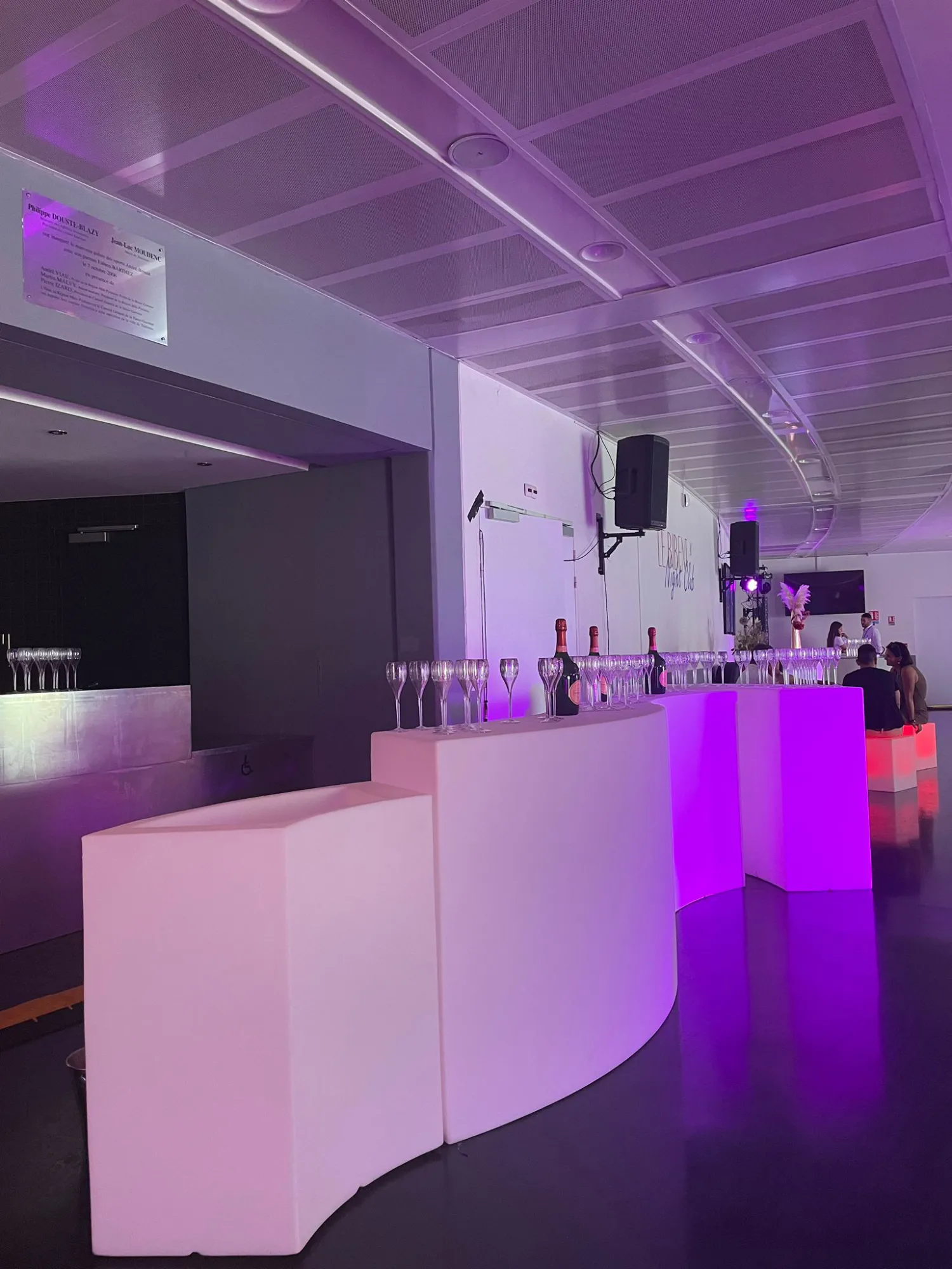 Disponible à la location à Toulouse, Montauban et dans toute l’Occitanie, le ICE Bar est une solution idéale pour concevoir un espace bar lumineux, structuré et parfaitement adapté aux événements professionnels et institutionnels.
