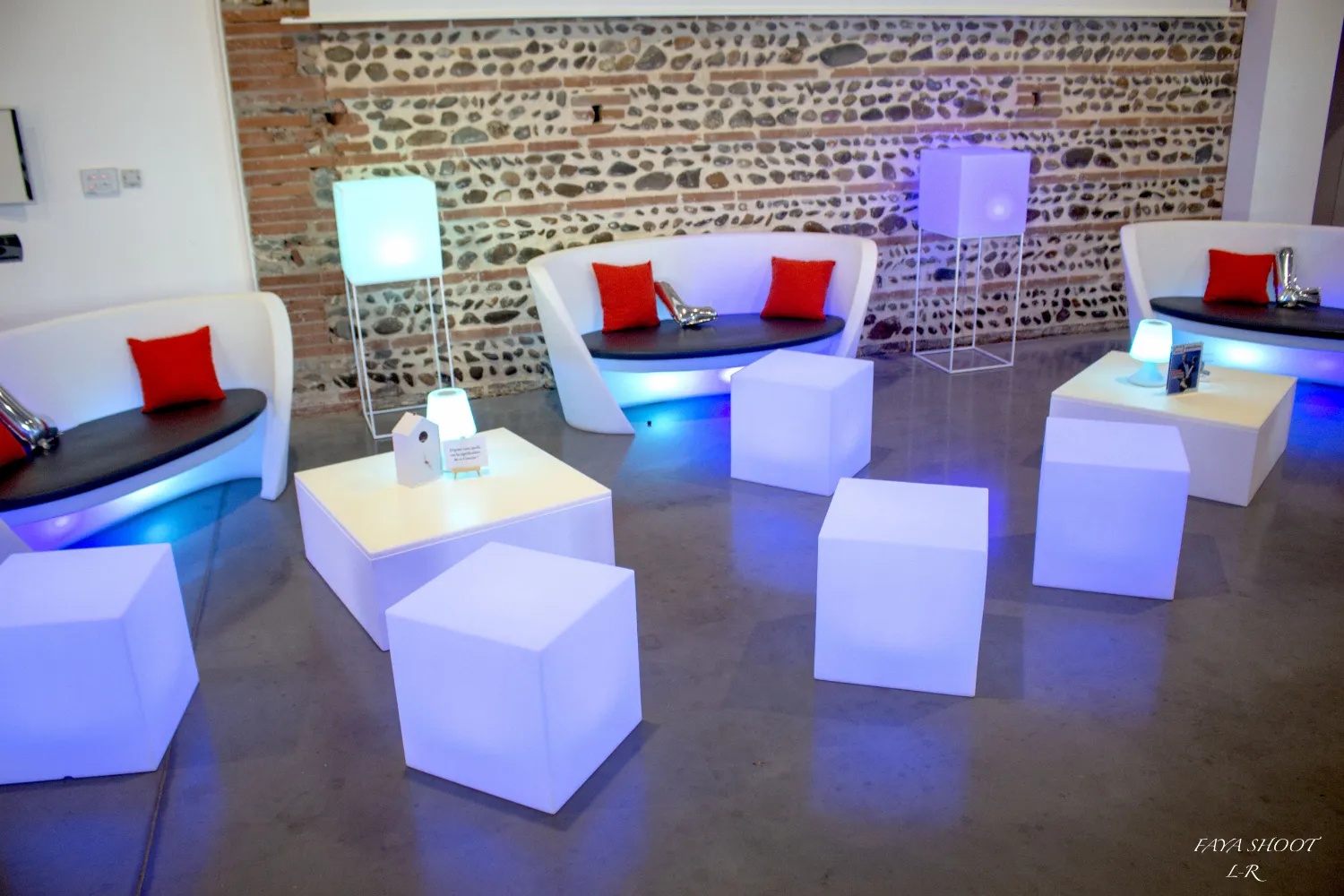 Illuminez vos événements avec la lampe VELA LIGHT, un luminaire au socle élégant et aux lignes fines, surmonté d’un cube lumineux qui diffuse une lumière douce et raffinée. À mi-chemin entre un lampadaire et une lampe de sol, elle s’adapte parfaitement à tous types d’environnements, qu’ils soient modernes, classiques ou naturels.