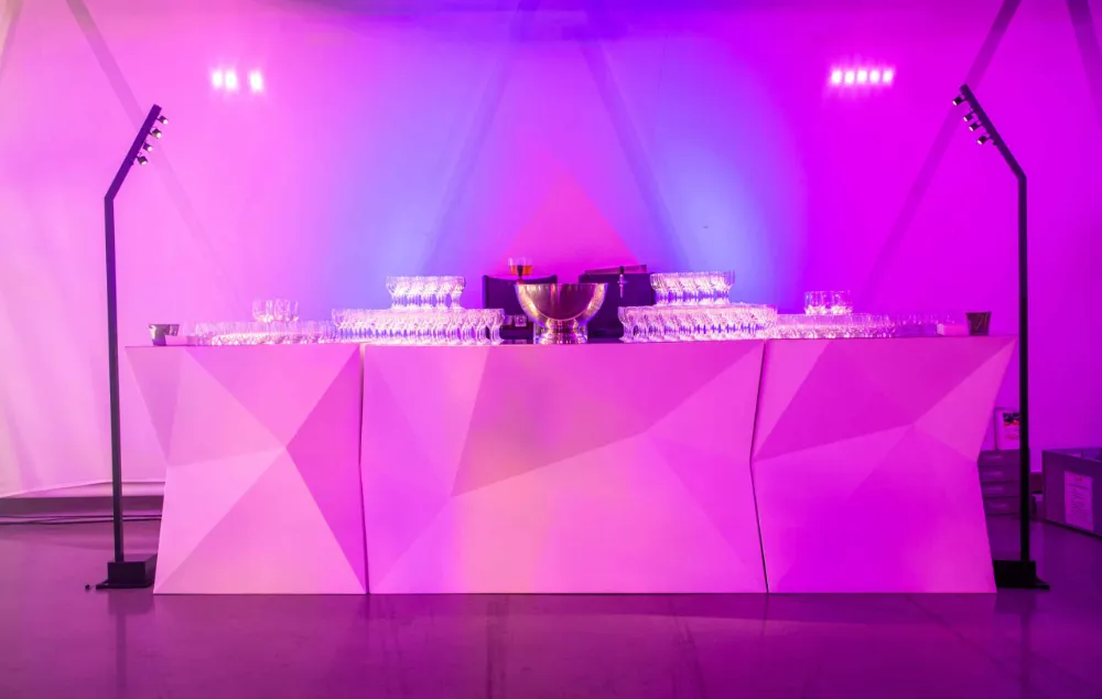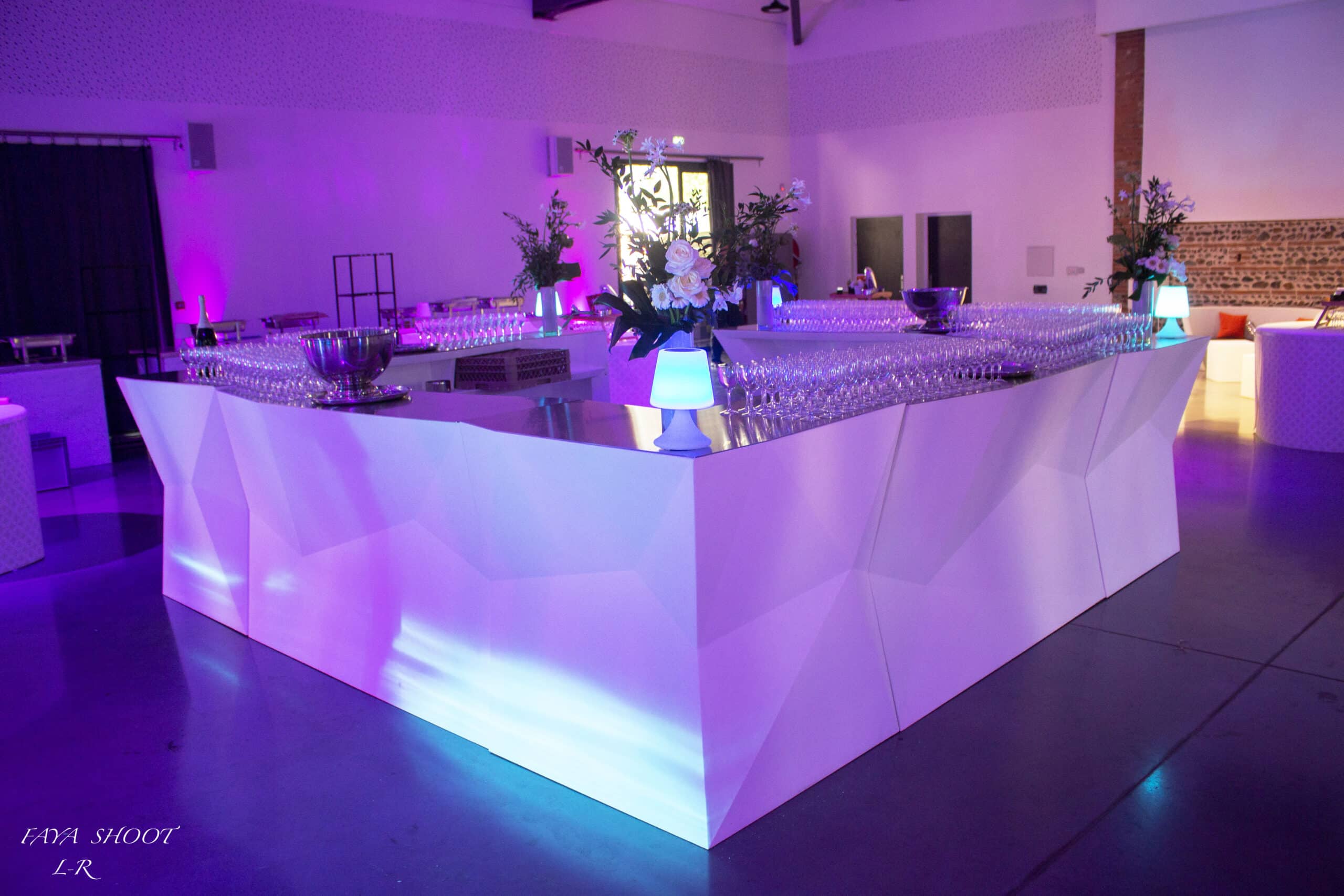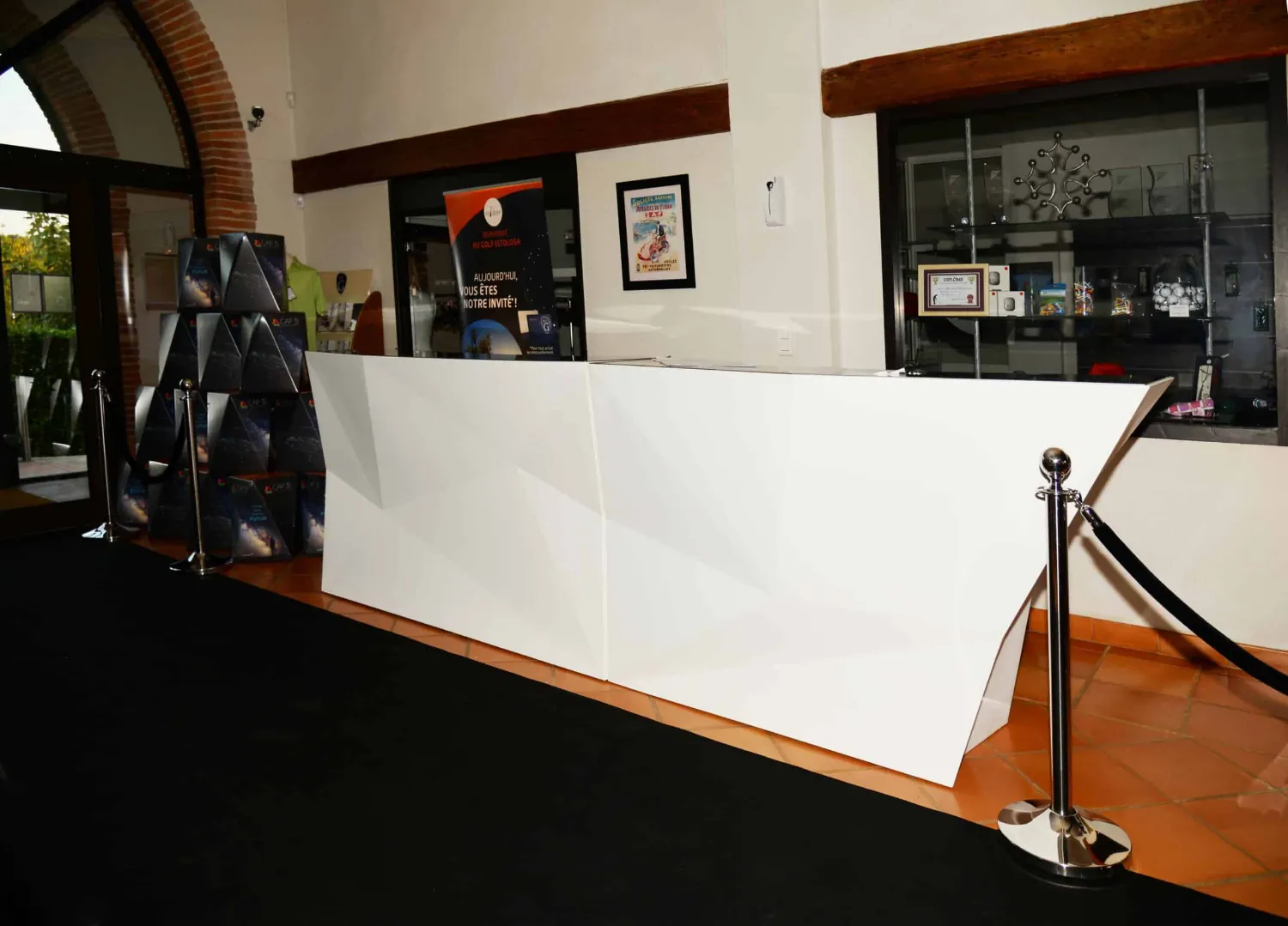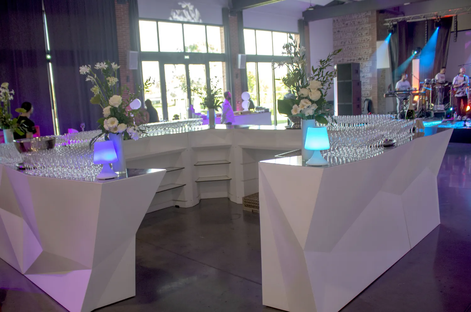 Disponible à la location à Toulouse, Montauban et dans toute l’Occitanie, le Lateral Bar FAZ est une solution idéale pour aménager un espace bar élégant, structuré et visuellement impactant lors de vos événements.