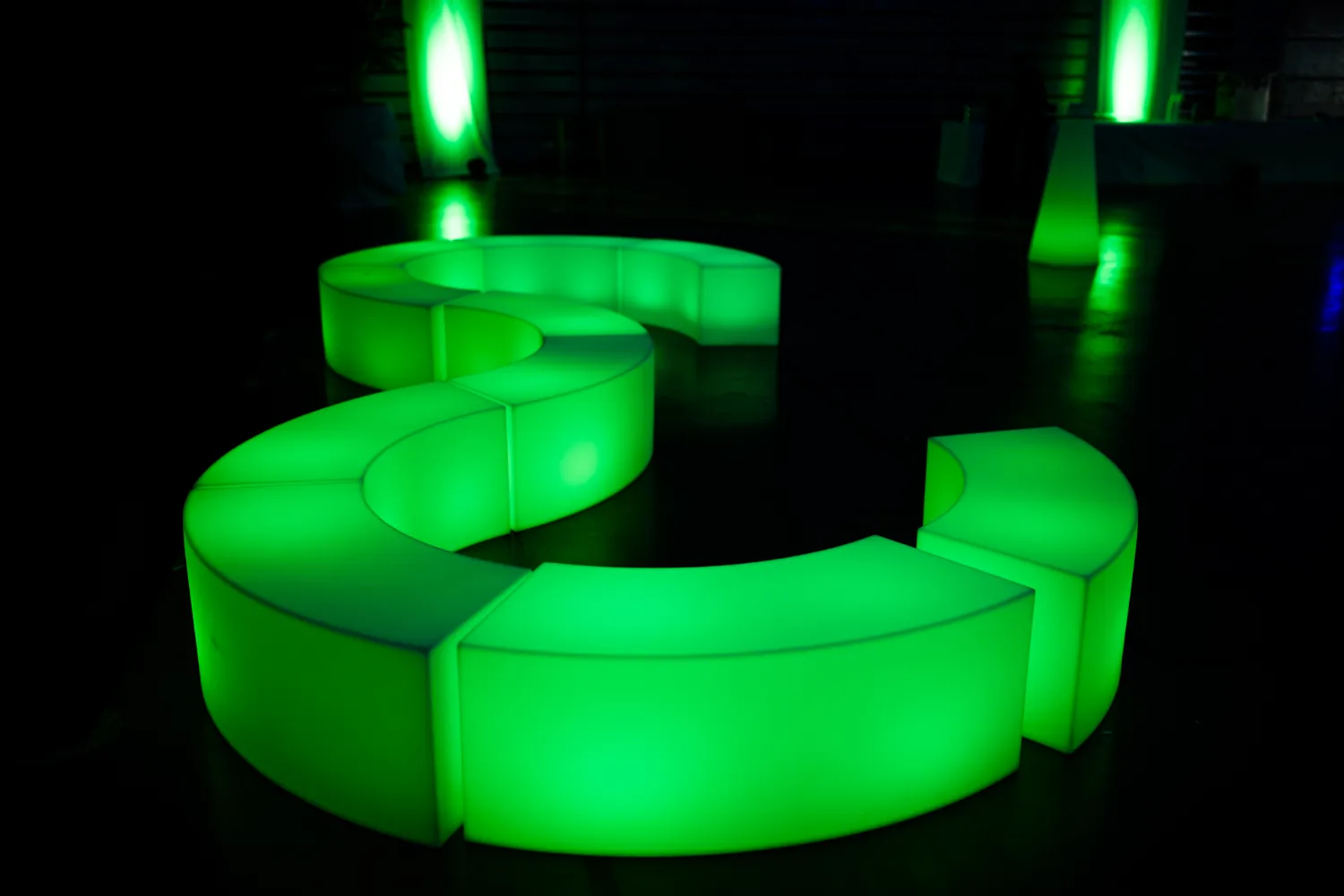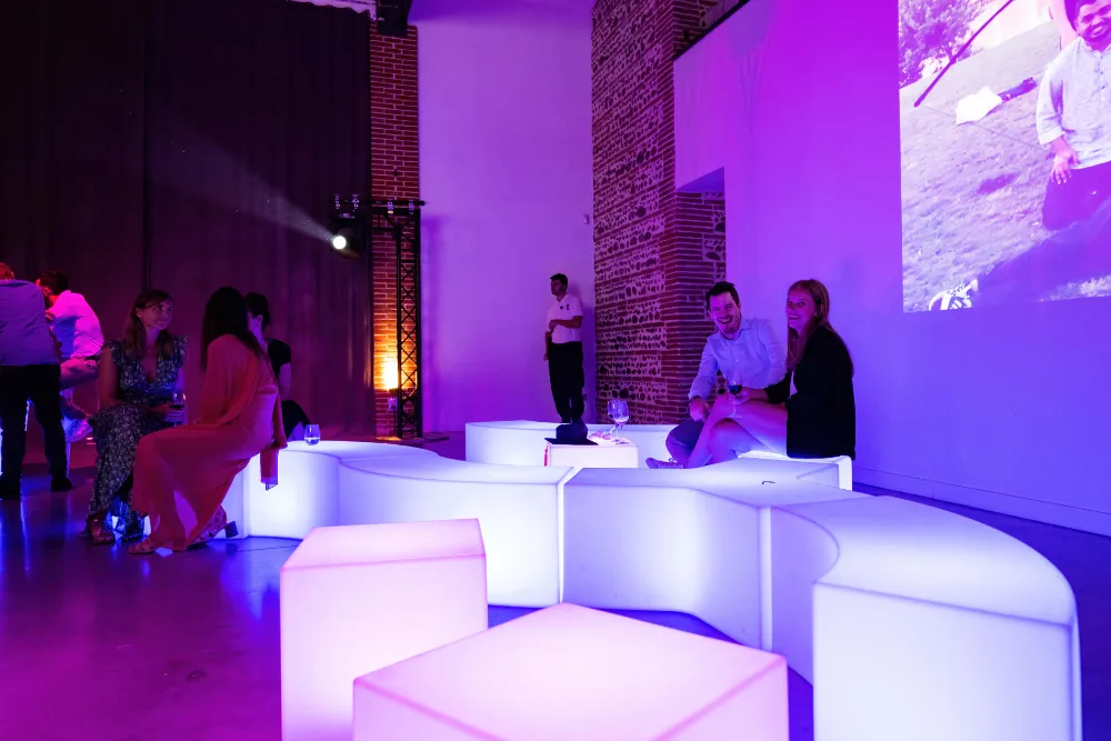 Disponible à la location à Toulouse, Montauban et dans toute l’Occitanie, le banc Snake est la solution parfaite pour structurer vos zones lounge tout en apportant une touche lumineuse raffinée à votre événement.