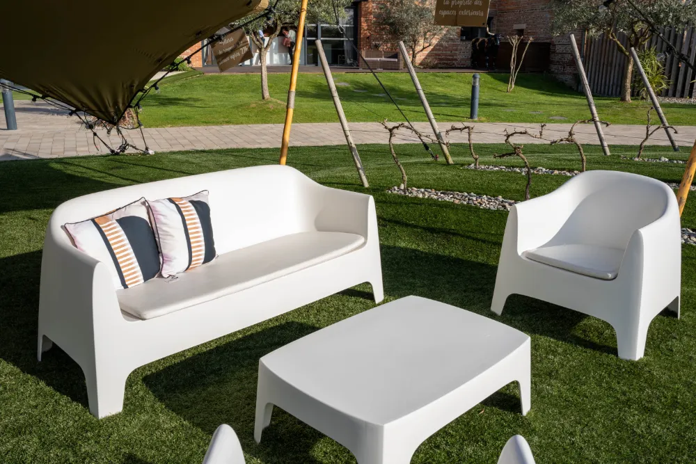 Son confort d’assise et son esthétique polyvalente permettent de l’intégrer dans de nombreuses ambiances : lounges élégants, terrasses éphémères ou espaces d’accueil au style affirmé. Le fauteuil SOLID devient rapidement un élément essentiel pour composer des zones détente harmonieuses et fonctionnelles.