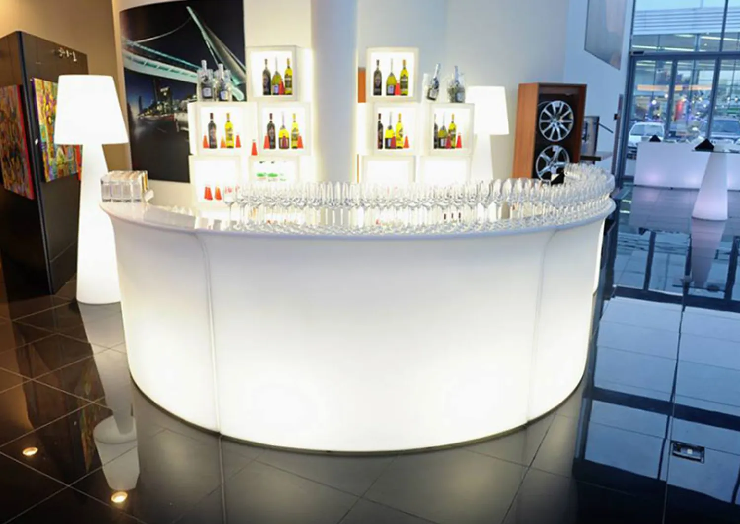 Le Break Bar lumineux s’intègre idéalement lors de soirées cocktails, salons professionnels, séminaires, anniversaires d’entreprise, ou cérémonies de vœux, où la lumière joue un rôle clé dans la création d’une atmosphère conviviale et qualitative. Placé au cœur de l’événement ou en complément d’un espace lounge, il structure les flux et favorise les échanges.