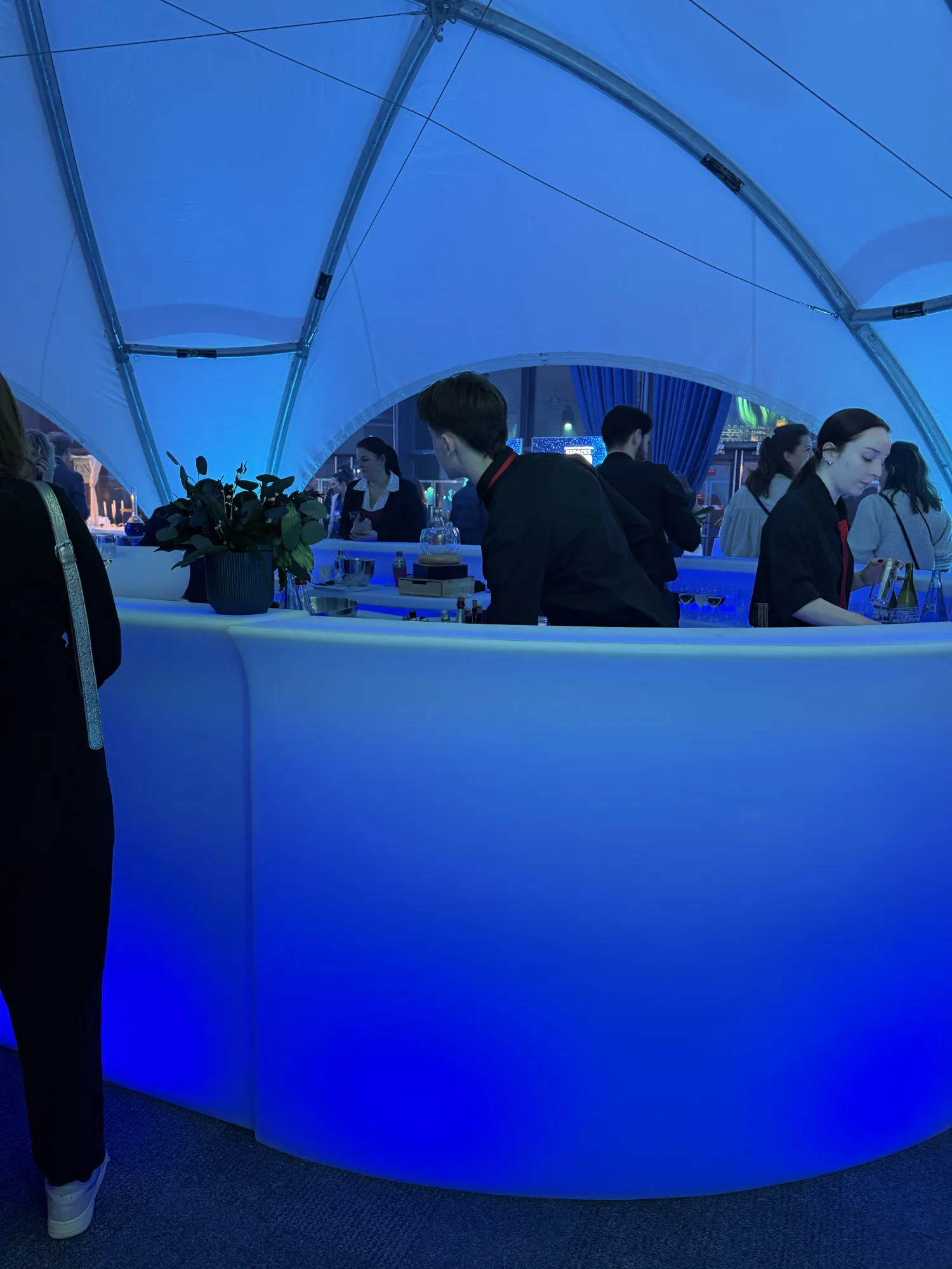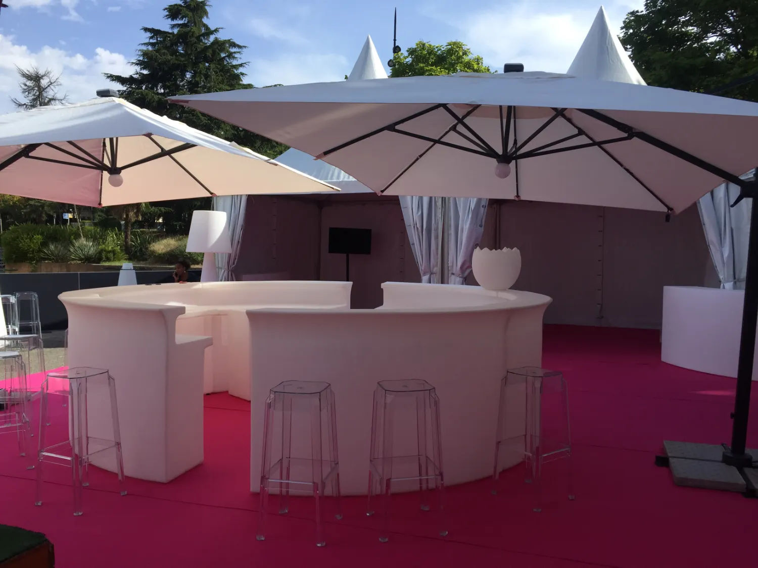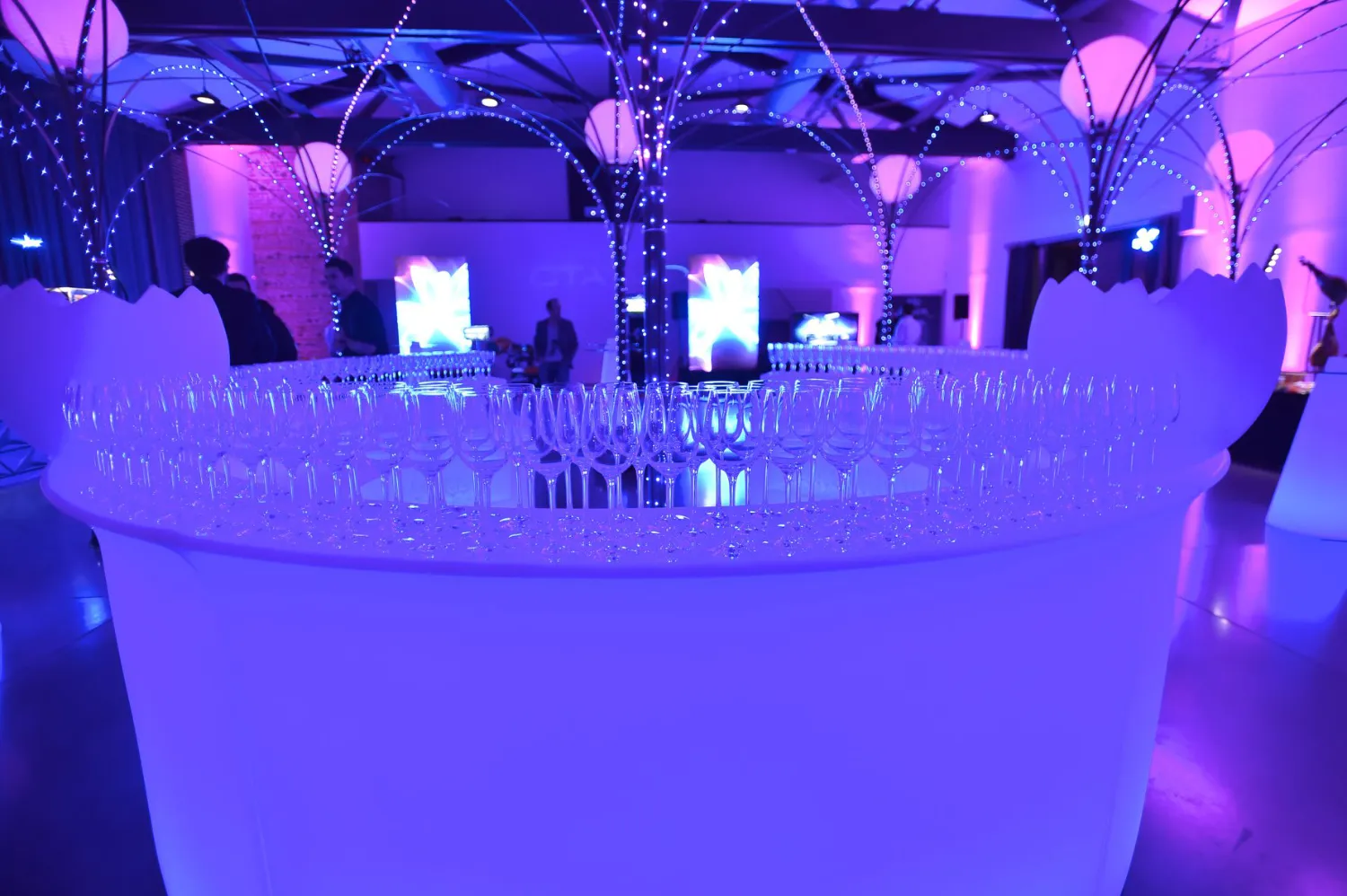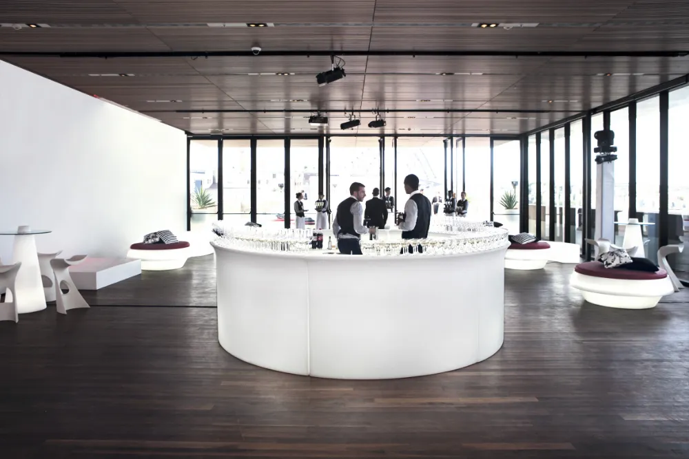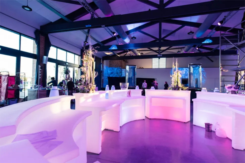 Fonctionnel et esthétique, ce bar lumineux offre une surface de service confortable pour les équipes tout en devenant un véritable point de repère pour les invités. Son éclairage intégré permet de valoriser l’espace, de dynamiser la scénographie et de renforcer l’identité visuelle de votre événement, aussi bien en intérieur qu’en extérieur.