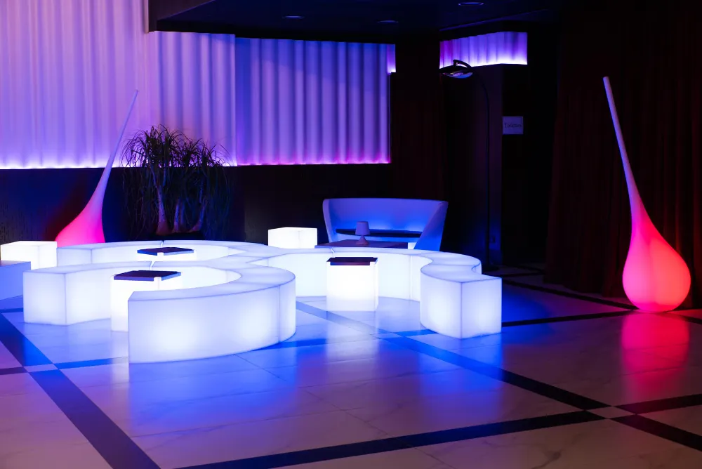 Sa lumière d’ambiance enveloppante attire immédiatement le regard, ce qui en fait une pièce de choix pour mettre en valeur un espace VIP, un hall de réception ou un coin détente. Grâce à son design affirmé, la KUBO INOX contribue à créer des ambiances originales, qu’il s’agisse d’une soirée cocktail, d’un gala, d’un congrès, d’une célébration ou encore d’une remise de prix. Elle offre une présence élégante qui convient aussi bien aux cérémonies de vœux, aux fêtes du personnel, qu’aux événements de fin d’année nécessitant un mobilier lumineux soigné.