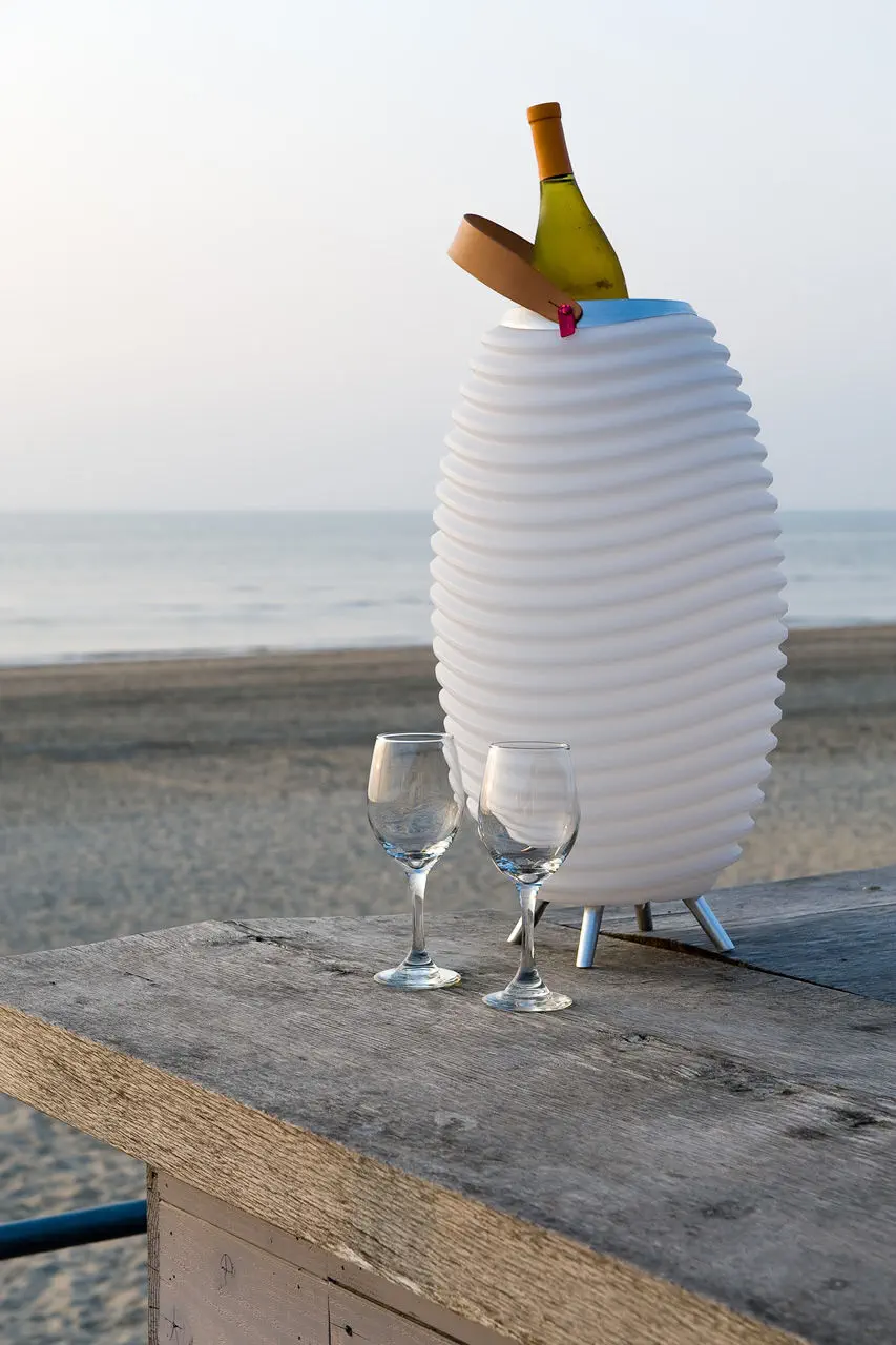 Apportez une touche de modernité et de raffinement à vos réceptions avec la lampe sur pied SYNERGY H50, un luminaire au design chic, sobre et minimaliste. Plus qu’une simple source de lumière, elle combine intelligemment trois fonctions : lampe d’ambiance, seau à champagne et enceinte connectée Bluetooth, faisant d’elle l’accessoire incontournable pour des événements réussis.