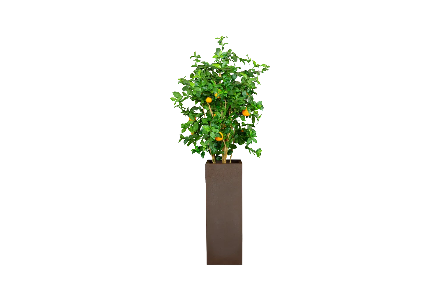 Pensé comme un véritable atout scénographique, l’oranger structure visuellement vos espaces tout en apportant de la couleur et du volume. Il trouve naturellement sa place dans des zones d’accueil, des espaces lounge, des terrasses couvertes ou des décors thématiques, en intérieur comme en extérieur abrité, sans aucune contrainte d’entretien.