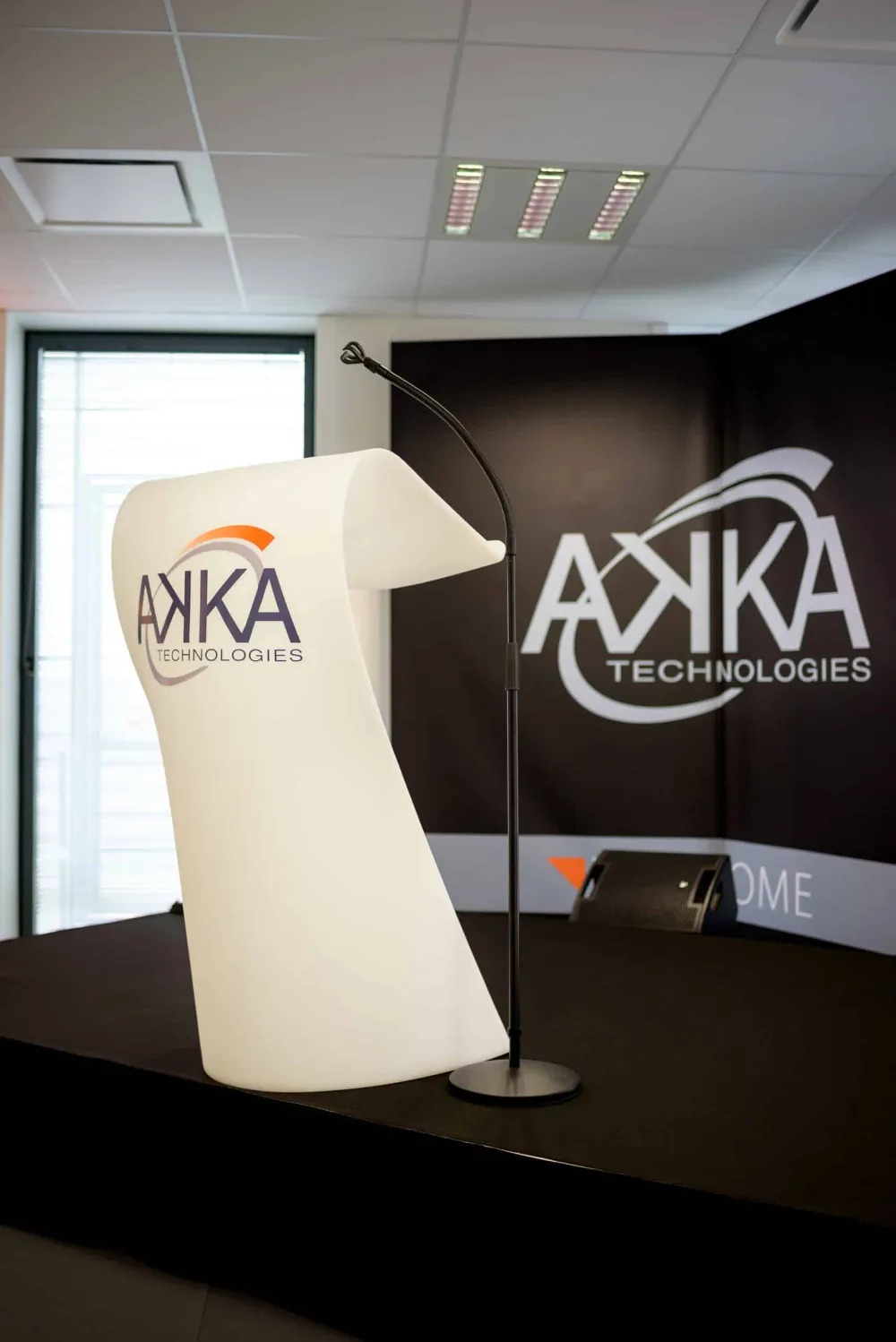 Ce pupitre est particulièrement adapté pour des conférences, conventions, salons professionnels, lancements de produits ou remises de prix, où la qualité visuelle et la lisibilité de la prise de parole sont essentielles.
