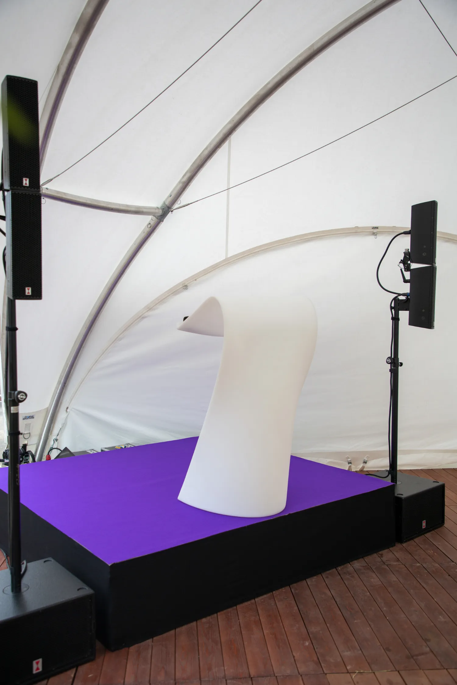Polyvalent, le pupitre SWICH trouve sa place aussi bien sur une scène, dans un espace d’exposition ou au cœur d’un dôme événementiel. Il s’associe facilement à une scène, un fond de décor ou un mur végétal pour créer une scénographie cohérente et professionnelle, en intérieur comme en extérieur couvert.