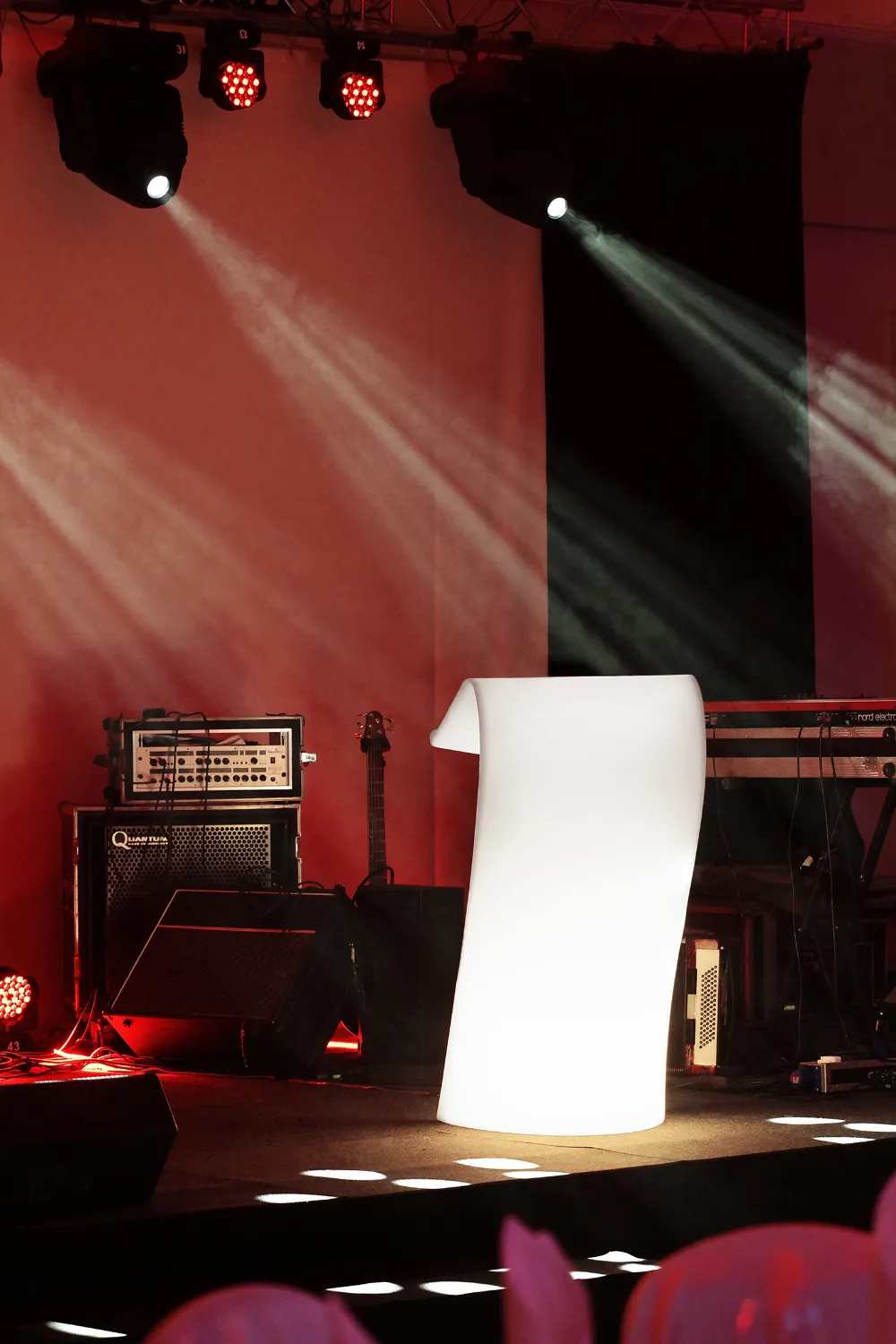 Le pupitre SWICH est un pupitre au design contemporain et sculptural, pensé pour apporter une forte valeur esthétique à vos prises de parole et espaces scéniques. Ses lignes fluides et asymétriques lui confèrent une allure moderne et élégante, idéale pour des événements où l’image et la scénographie jouent un rôle clé. Réalisé dans un matériau léger et résistant, il combine parfaitement stabilité, ergonomie et impact visuel.