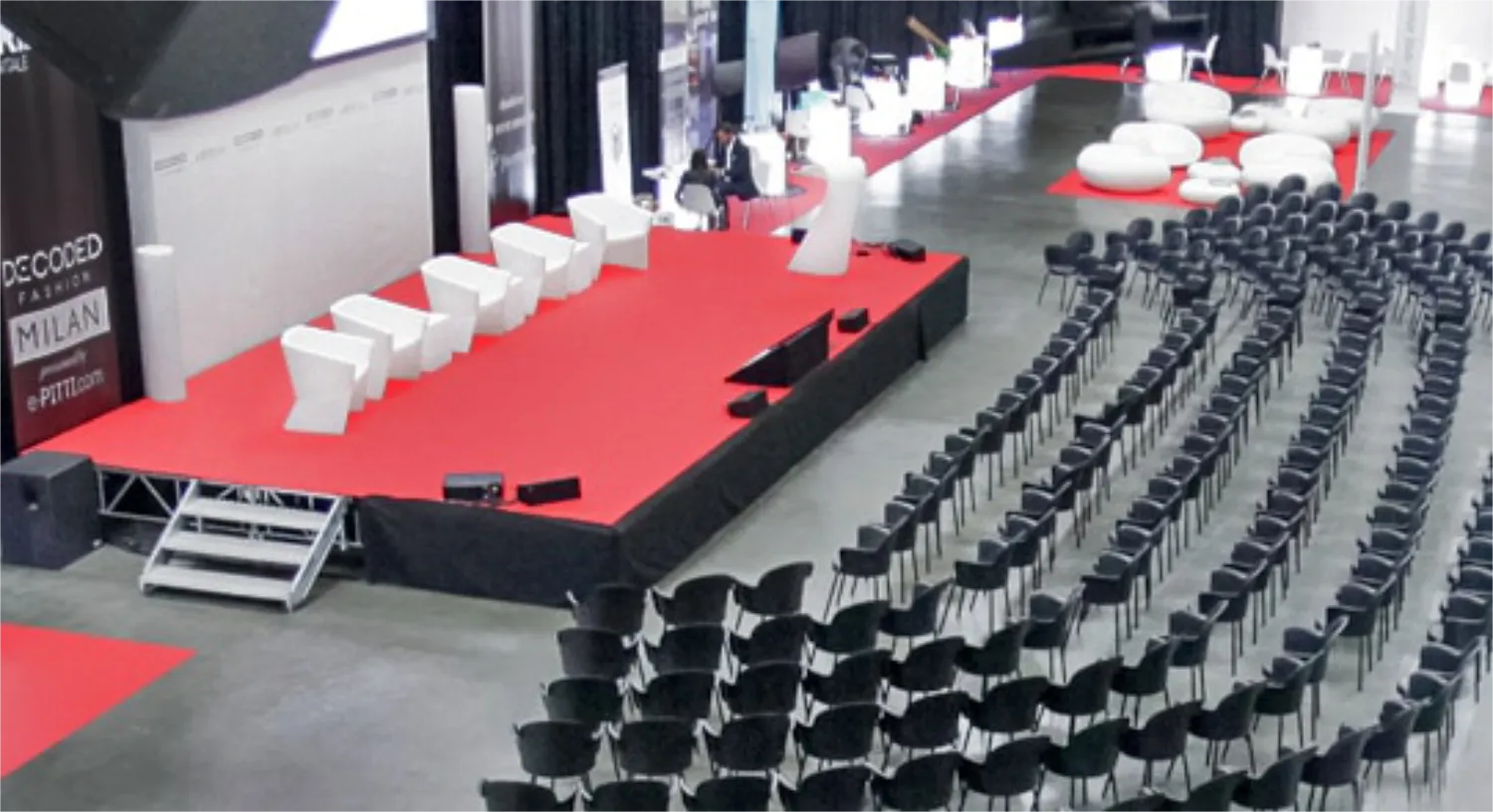 Cette scène est particulièrement adaptée pour des conférences, conventions, remises de prix, festivals ou événements culturels, où la visibilité, la structuration de l’espace et la qualité de la présentation sont primordiales.