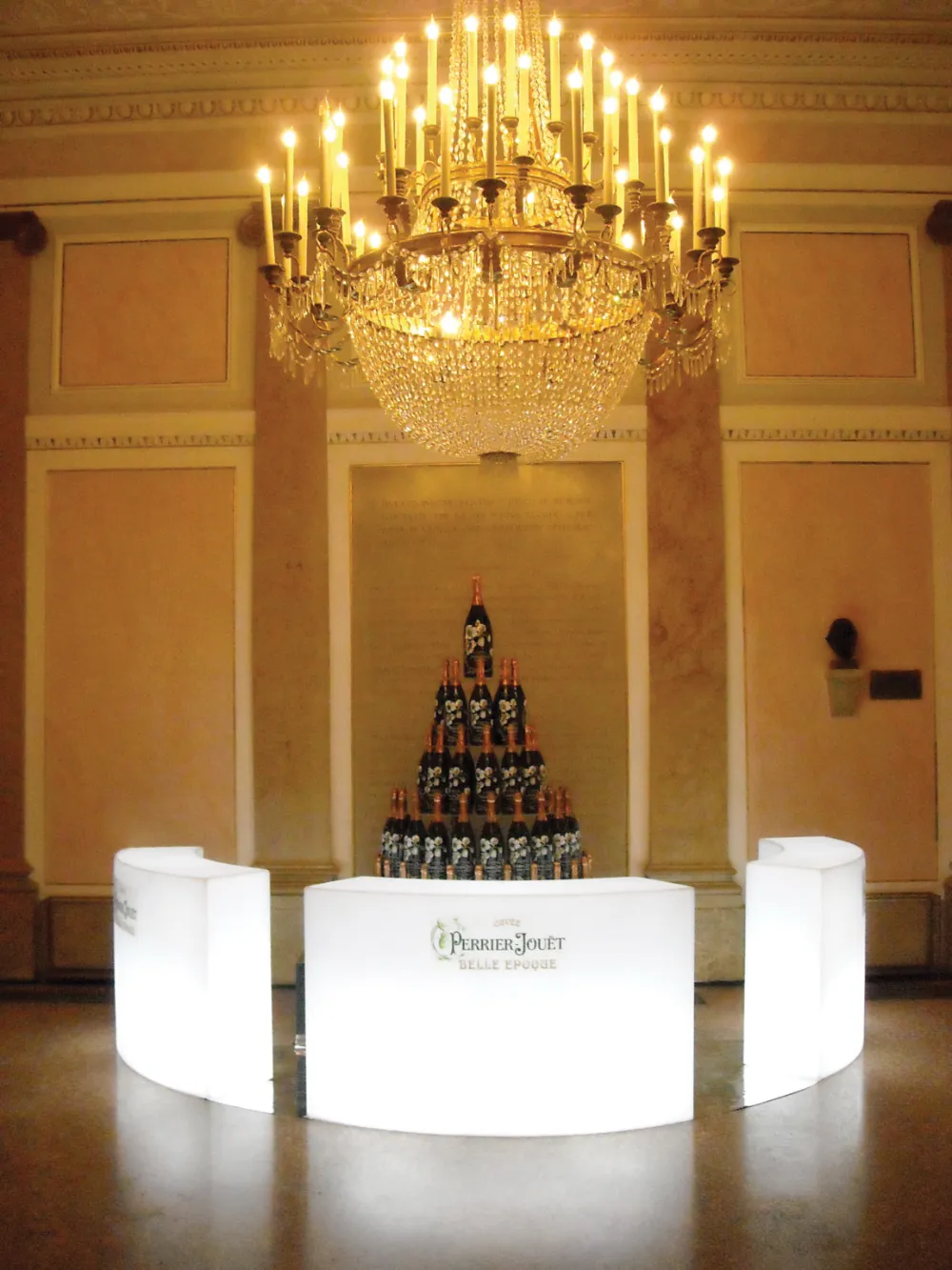Ce bar lumineux trouve toute sa pertinence lors de lancements de produit, séminaires, soirées cocktails, remises de diplôme, ou cérémonies de vœux, où la lumière joue un rôle essentiel dans la création d’une atmosphère accueillante et qualitative. Il contribue à renforcer l’identité visuelle de votre événement tout en facilitant l’organisation et le service.