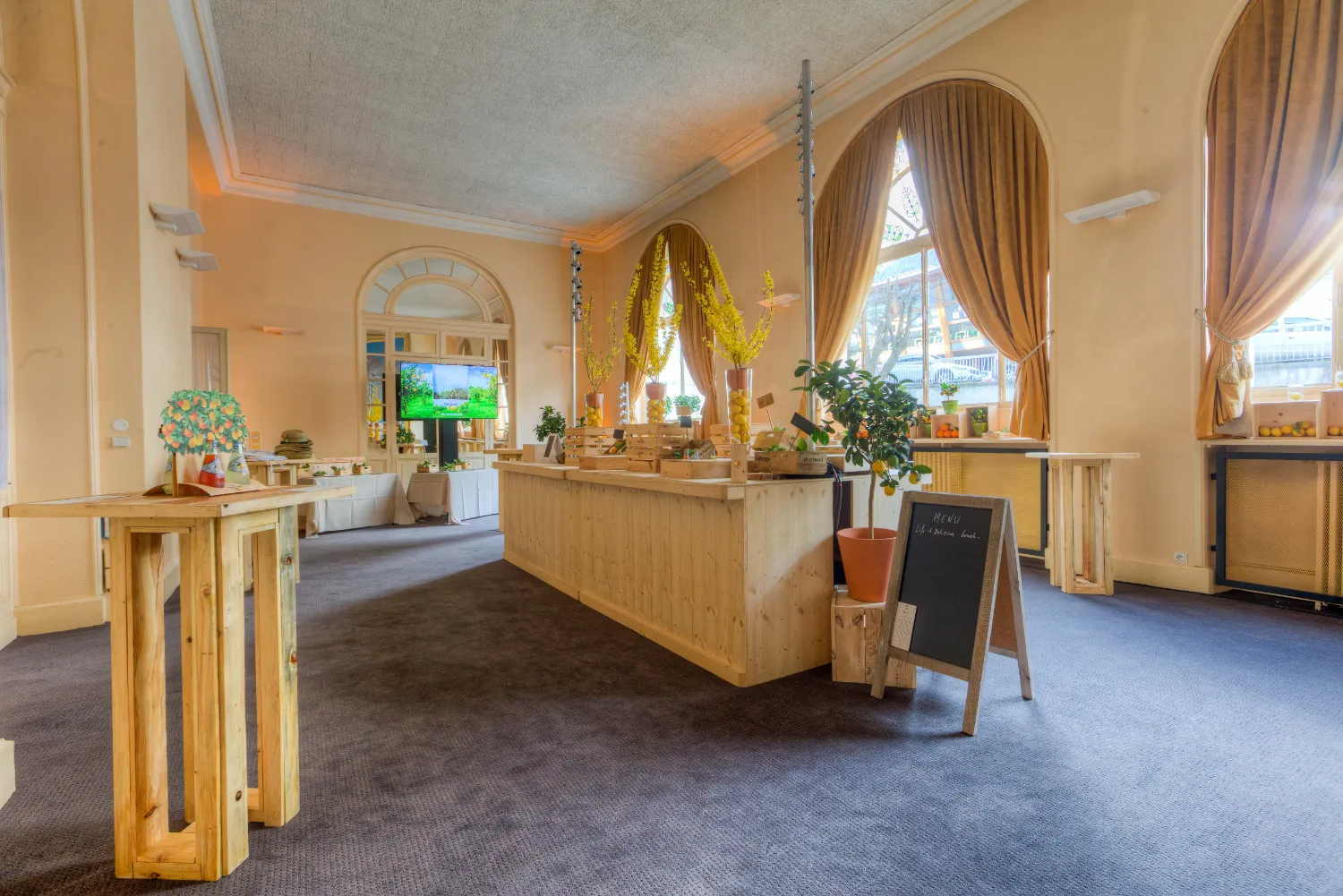 Cette table s’intègre parfaitement dans des univers champêtres, bohèmes ou naturels, que ce soit pour un mariage, une garden party, une soirée d’été ou un anniversaire d’entreprise. Elle se prête également très bien à des formats plus professionnels : salons, séminaires ou lancements de produit, où son style authentique contraste élégamment avec des décors plus contemporains. Lors d’un gala, d’une soirée thématique ou d’une célébration, elle devient un point de rencontre chaleureux propice aux échanges.