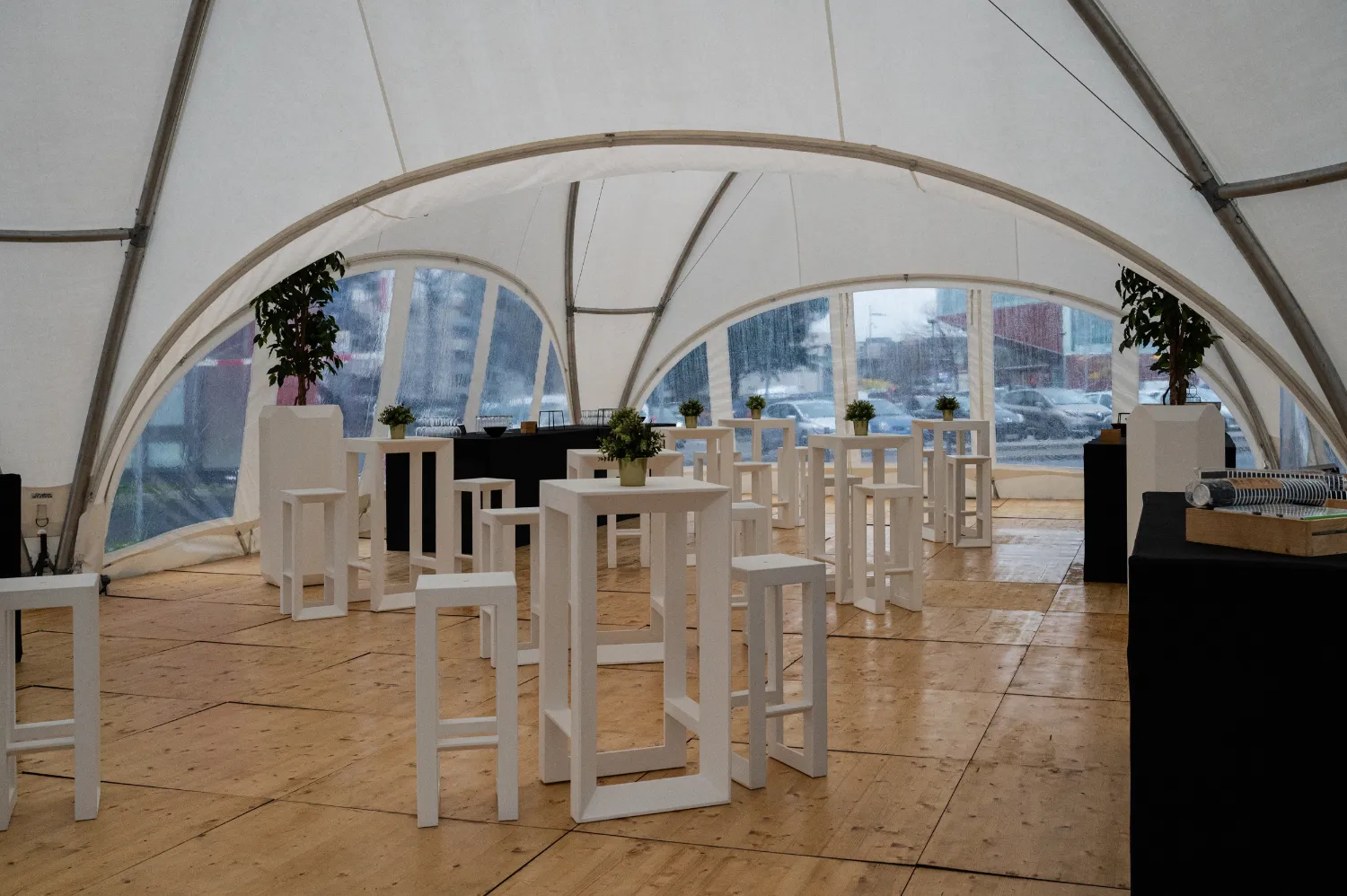 Idéale pour accompagner une soirée cocktail, un gala, un lancement de produit ou une soirée thématique, la table FRAME devient un point d’appui raffiné pour vos convives. Elle se révèle tout aussi pertinente dans des environnements professionnels tels qu’un salon, un séminaire, une conférence, un forum d’affaires ou un congrès, où son style contemporain contribue à une mise en scène équilibrée et accueillante. Utilisée lors d’un anniversaire d’entreprise, d’une garden party ou d’une célébration, elle structure l’espace avec élégance et simplicité.