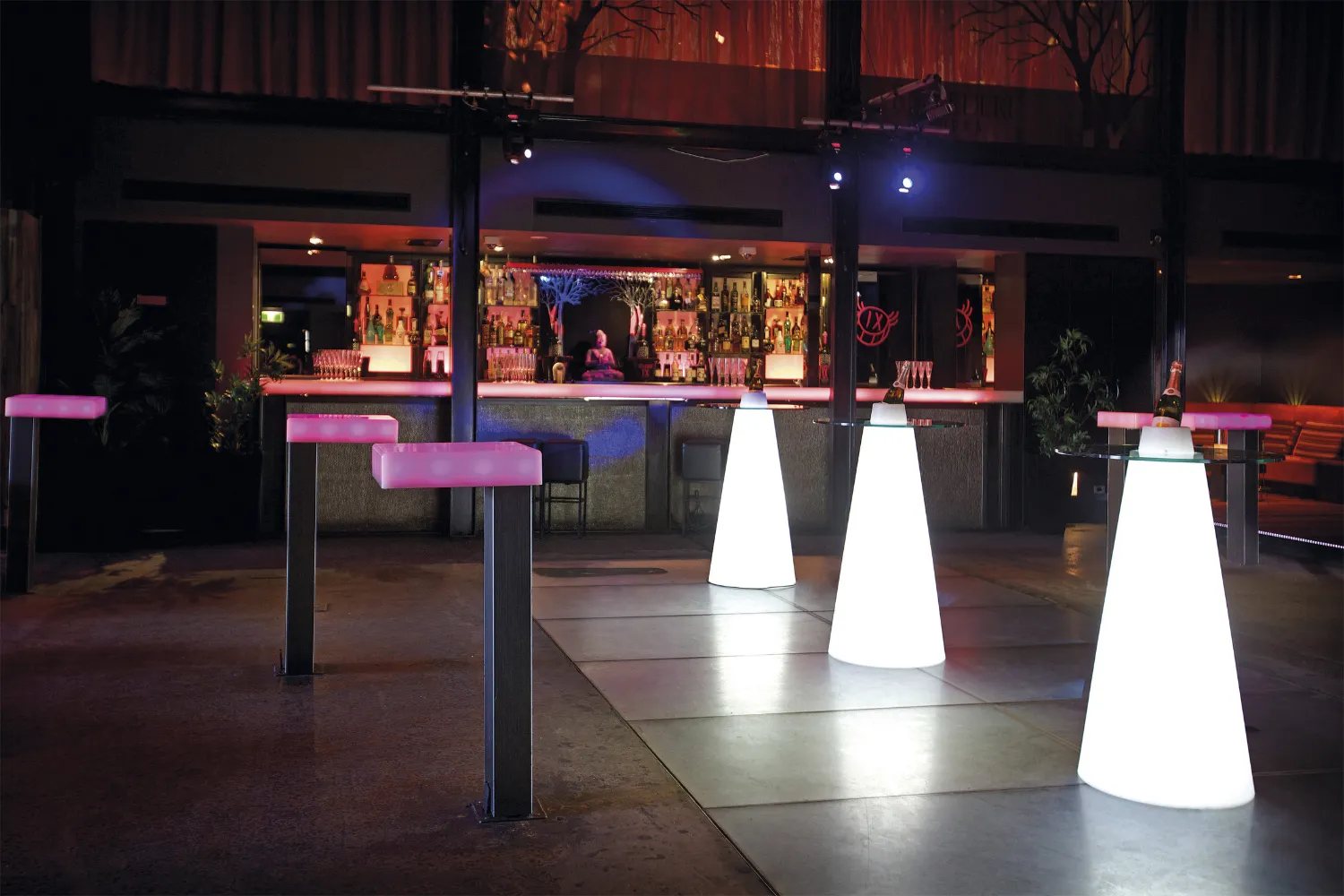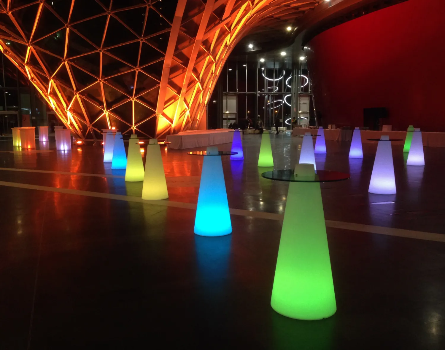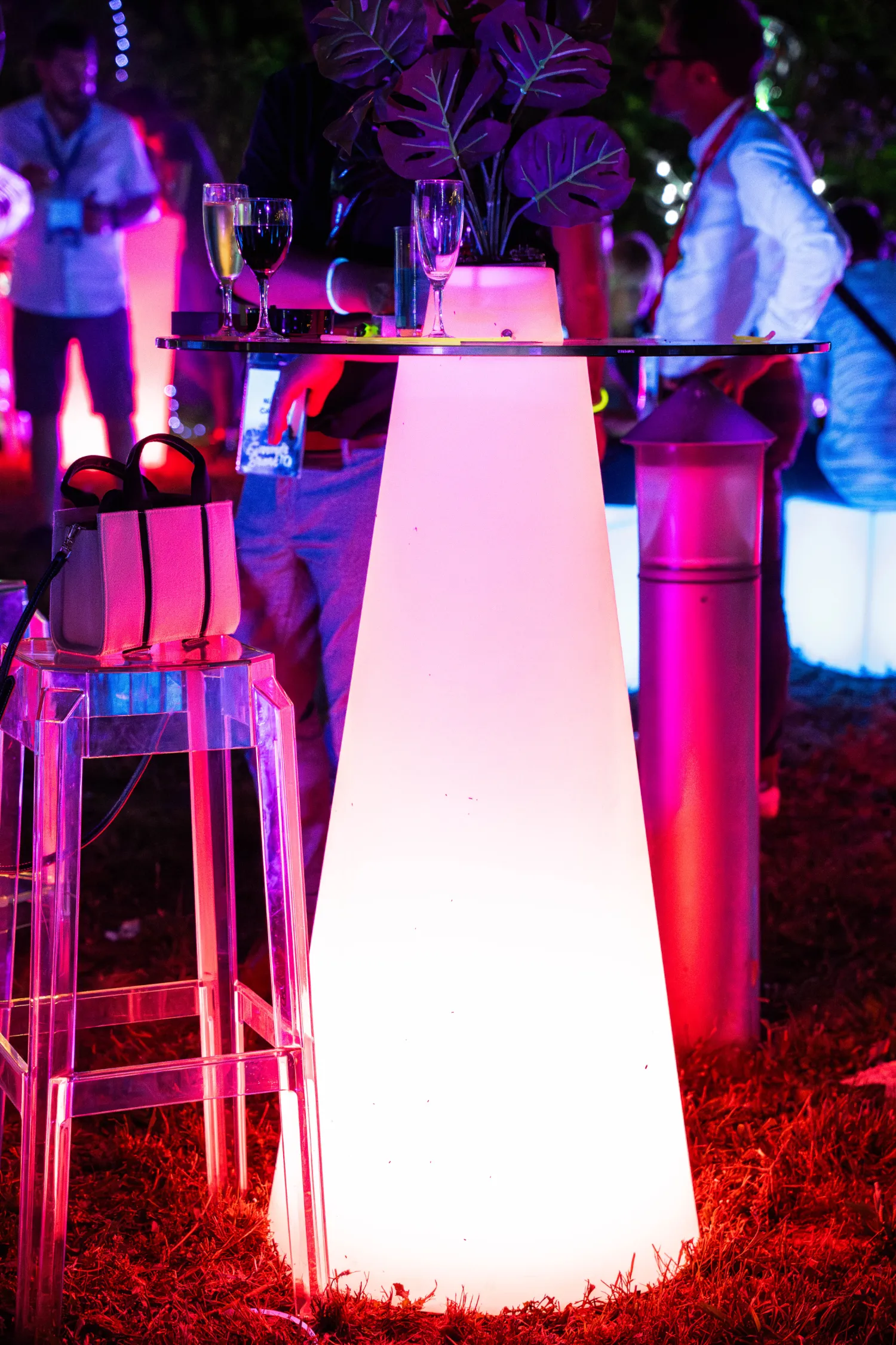 Cette table s’intègre parfaitement lors de soirées cocktails, galas, lancements de produit, où elle devient un point central visuel et convivial. Lors d’un mariage, d’une garden party ou d’une célébration, la table PEAK lumineuse permet de structurer subtilement l’espace tout en ajoutant une note décorative unique.