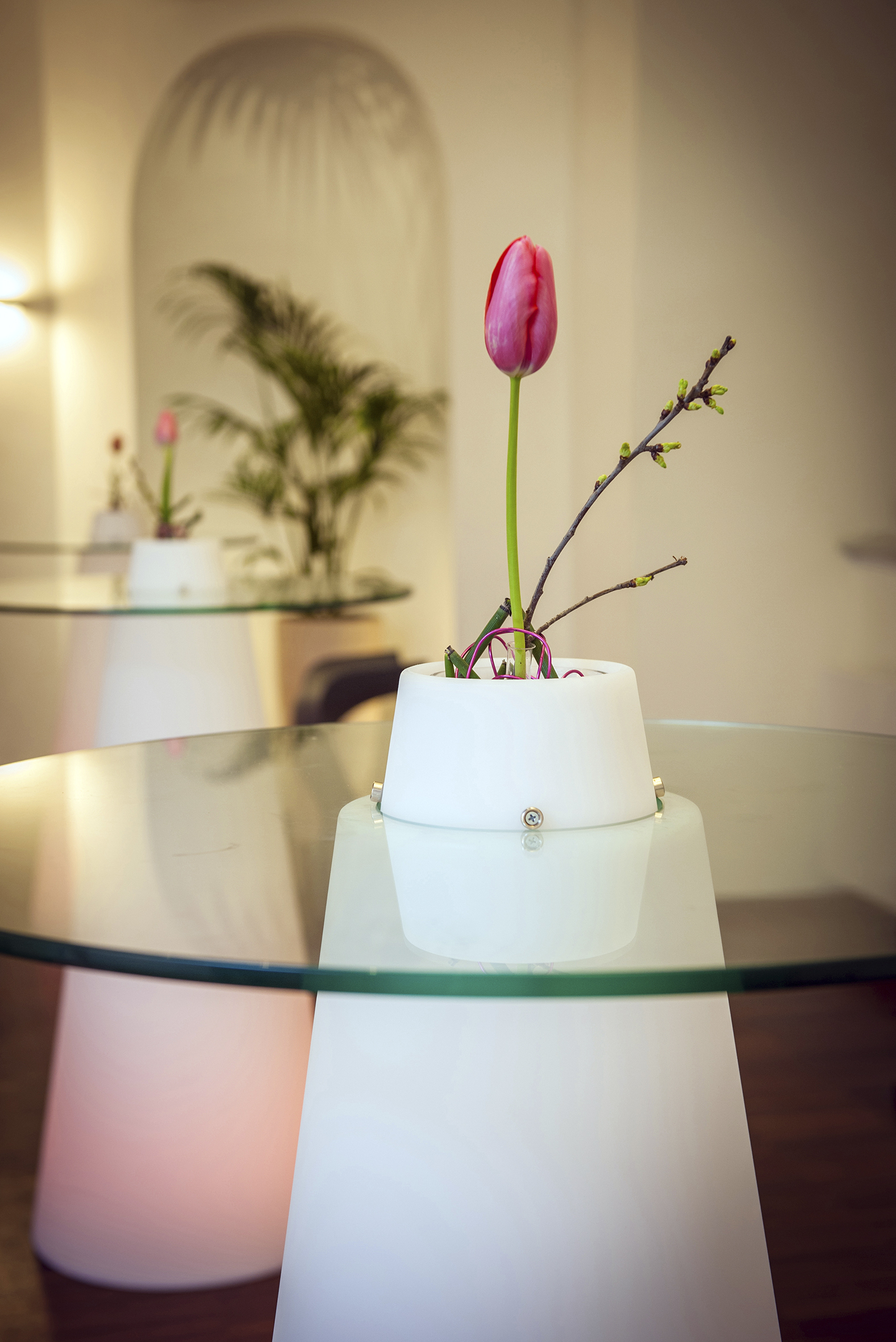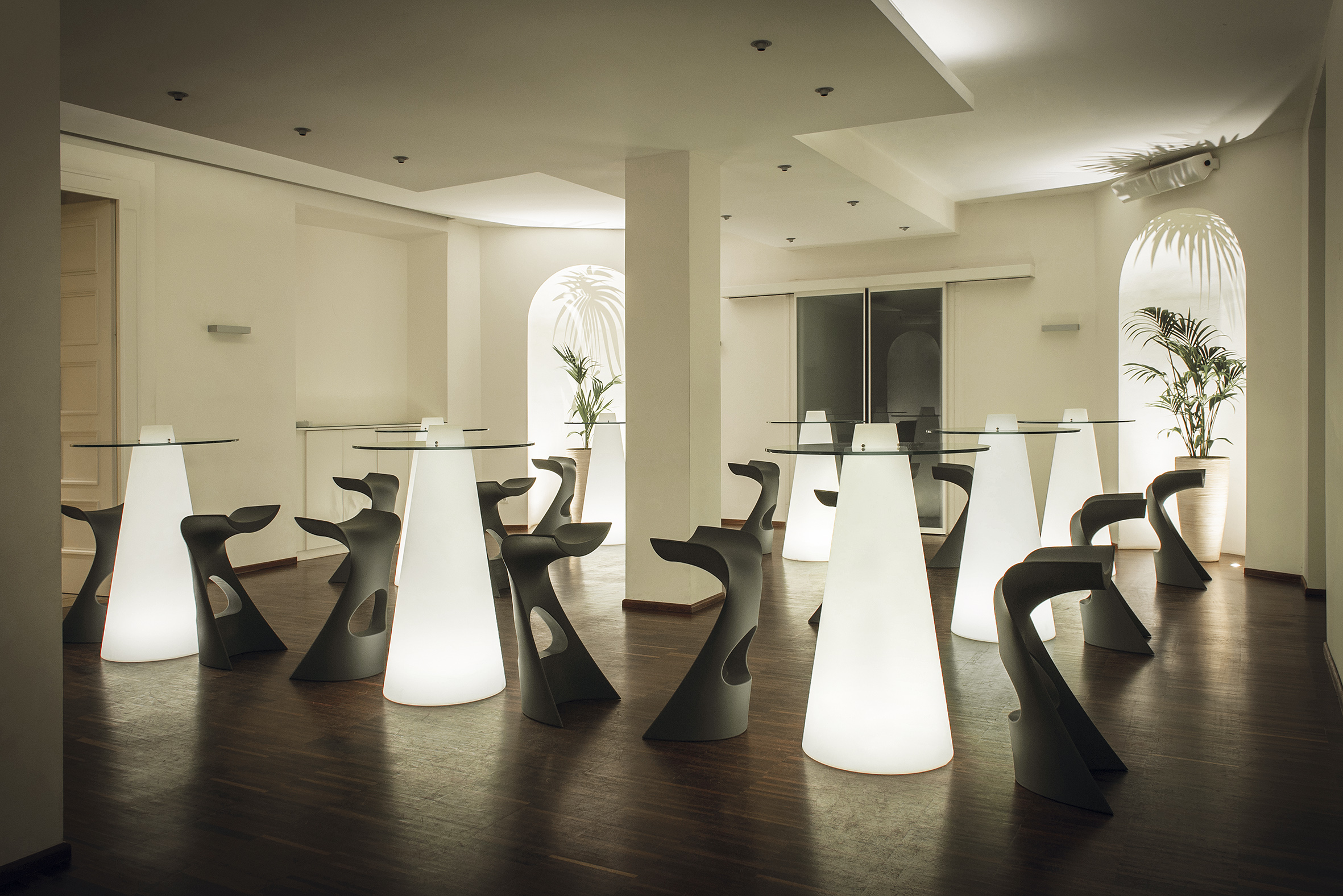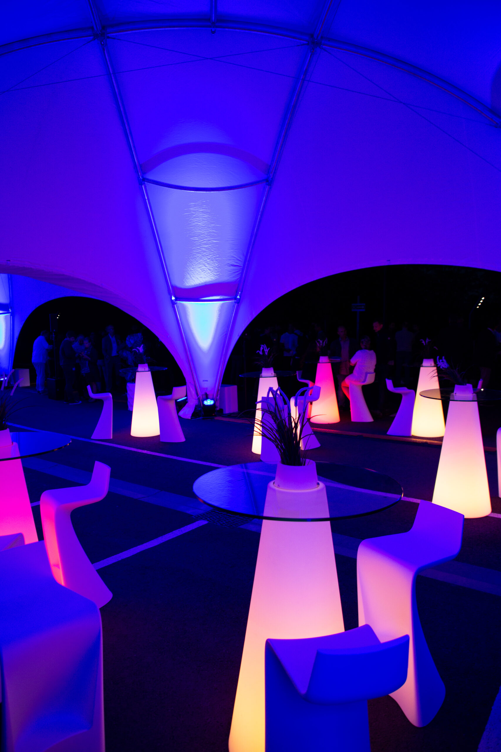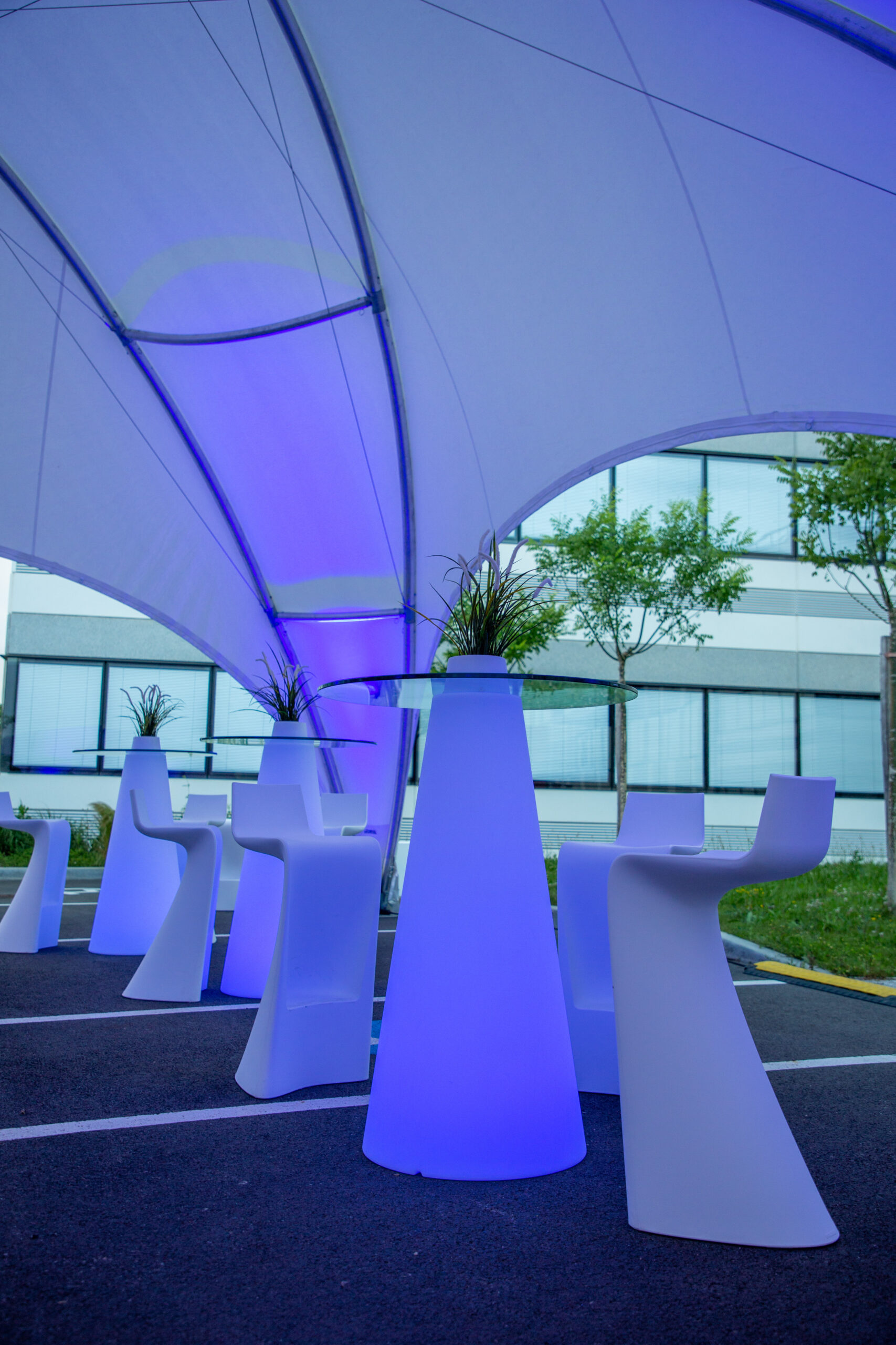 Cette table s’intègre parfaitement lors de soirées cocktails, galas, lancements de produit, où elle devient un point central visuel et convivial. Lors d’un mariage, d’une garden party ou d’une célébration, la table PEAK lumineuse permet de structurer subtilement l’espace tout en ajoutant une note décorative unique.