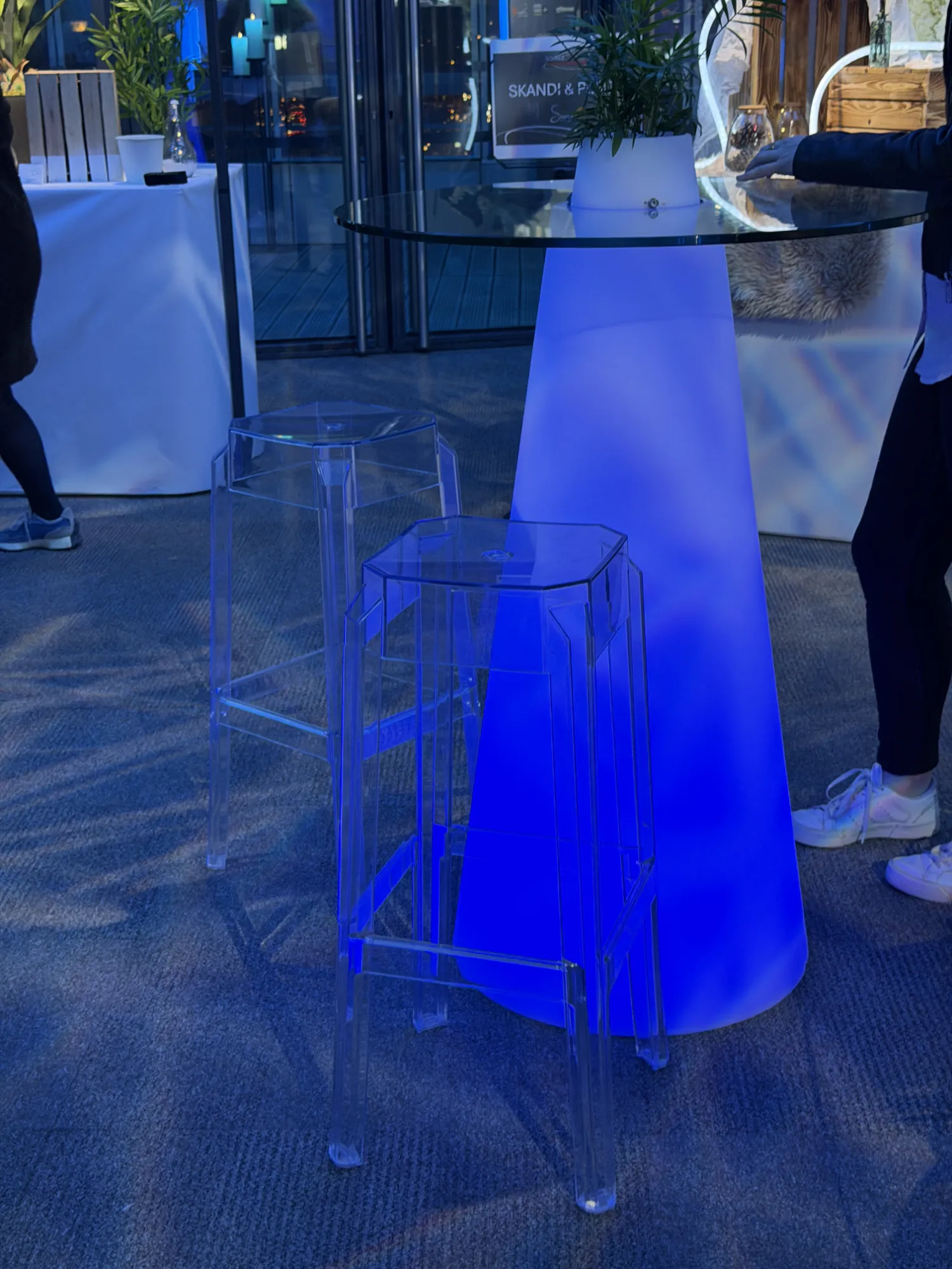 Stable, pratique et visuellement impactante, elle peut être utilisée en intérieur comme en extérieur pour composer des ambiances lumineuses harmonieuses. Disponible à la location à Toulouse, Montauban et dans toute l’Occitanie, le mange-debout PEAK lumineux est une solution idéale pour créer des espaces modernes, fonctionnels et accueillants.
