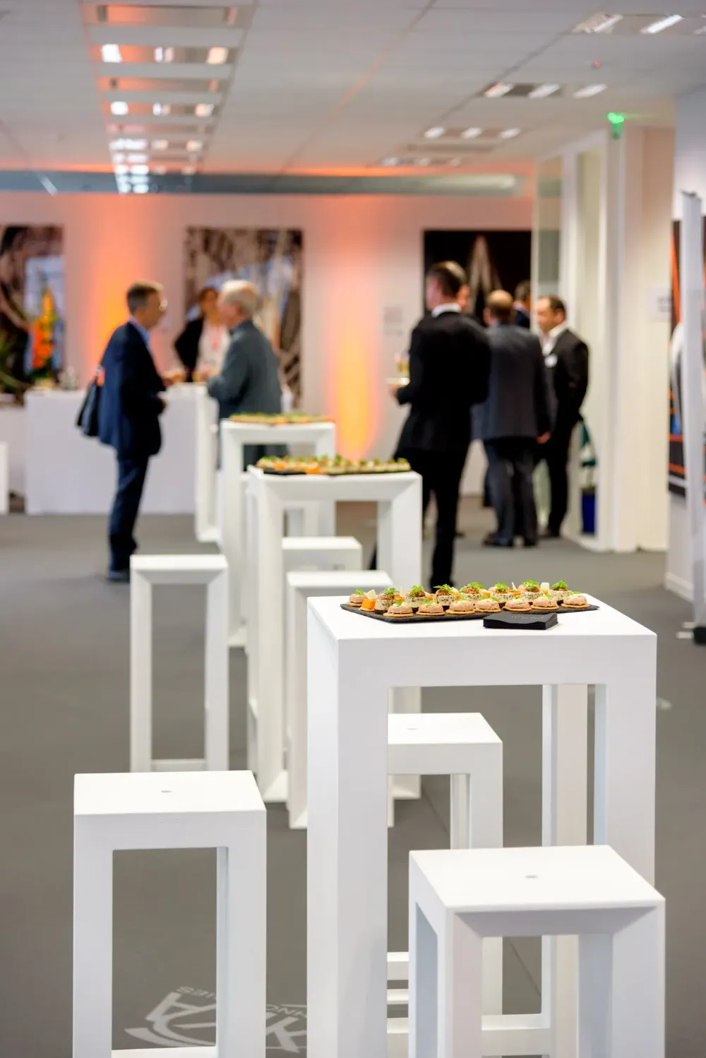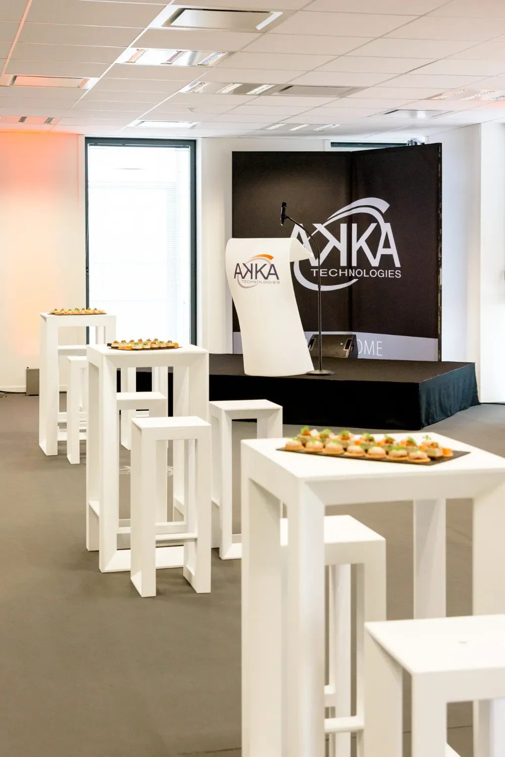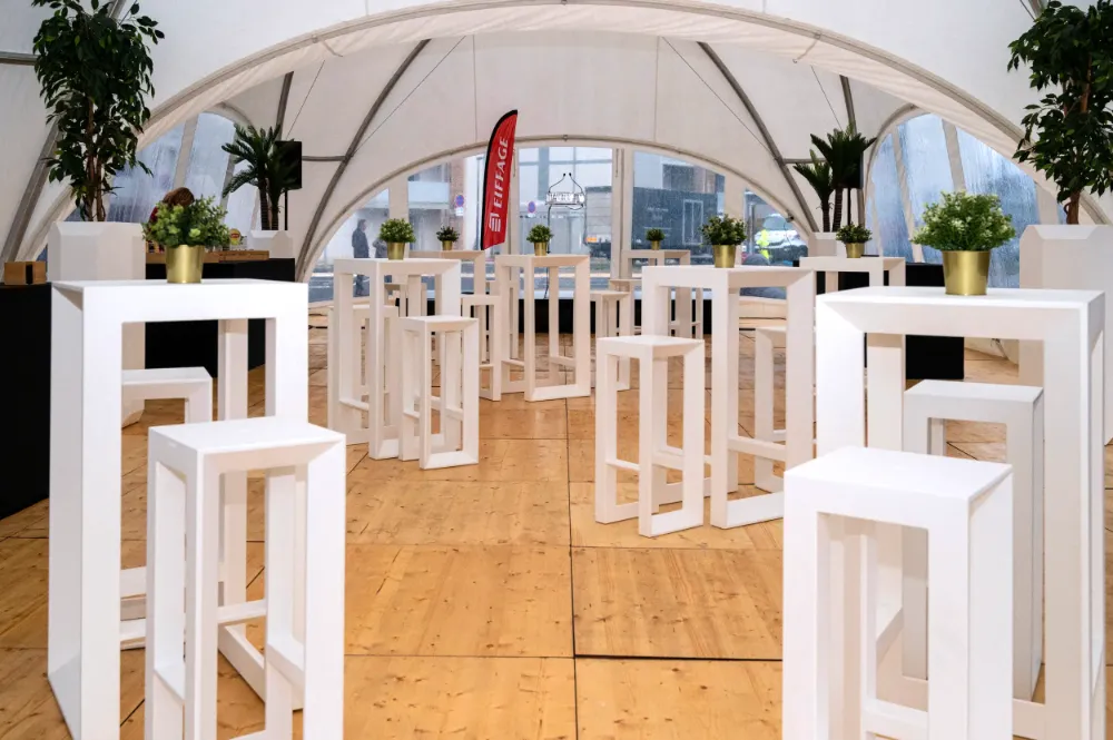 Ce modèle est parfaitement adapté pour des séminaires, cocktails design, lancements de produits, salons professionnels, ou afterworks, où esthétique et praticité se rejoignent.