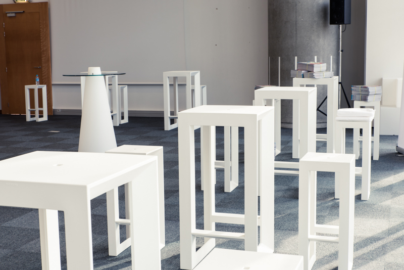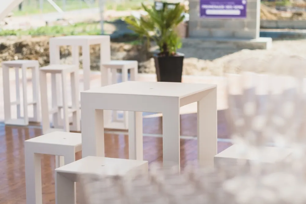 Son look minimaliste lui permet de s’intégrer dans des atmosphères élégantes, corporate ou créatives. Stable, léger et fonctionnel, il est parfait pour accompagner un mange-debout, un bar éphémère ou une zone lounge. Le tabouret FRAME devient ainsi un élément clé pour structurer vos espaces tout en renforçant l’identité visuelle de votre scénographie.