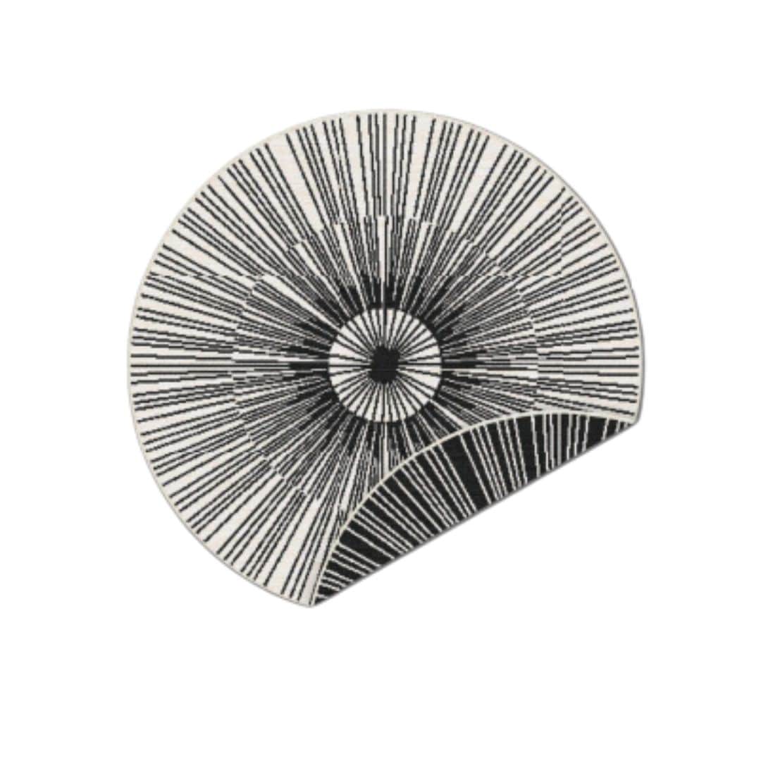 Le tapis CONSTELLATION est un tapis graphique au design contemporain, pensé pour structurer vos espaces événementiels avec caractère et élégance. Son motif radial noir et écru, inspiré des constellations et des jeux de lignes abstraites, crée un fort impact visuel tout en apportant rythme et profondeur à votre scénographie.
